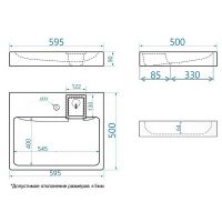 Раковина Azario SHARP NEW 600х500х90 литьевой мрамор, сифон в комплекте, белый (CS00105718)