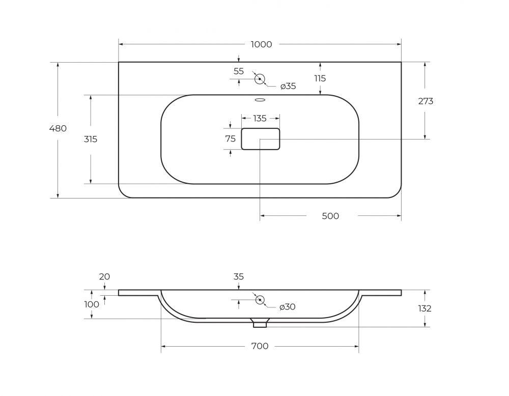 Раковина из искусственного мрамора, 1000x480x132, CZR-1000/480-LV-MR-NV
