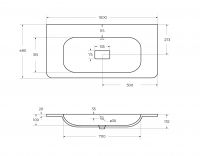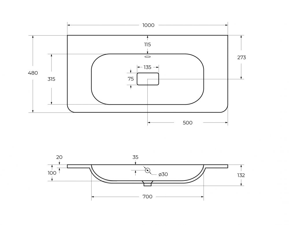 Раковина из искусственного мрамора, без отверстия под смеситель, 1000x480x132, CZR-1000/480-LV-MR-NV-W0