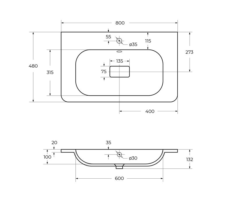 Раковина CEZARES CZR-800/480-LV-MR-NV