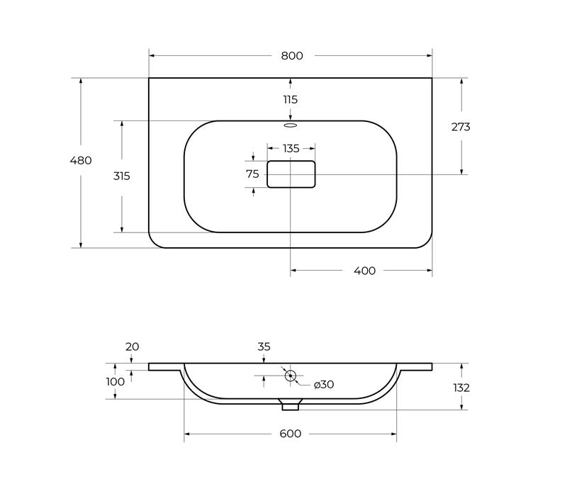 Раковина CEZARES CZR-800/480-LV-MR-NV-W0