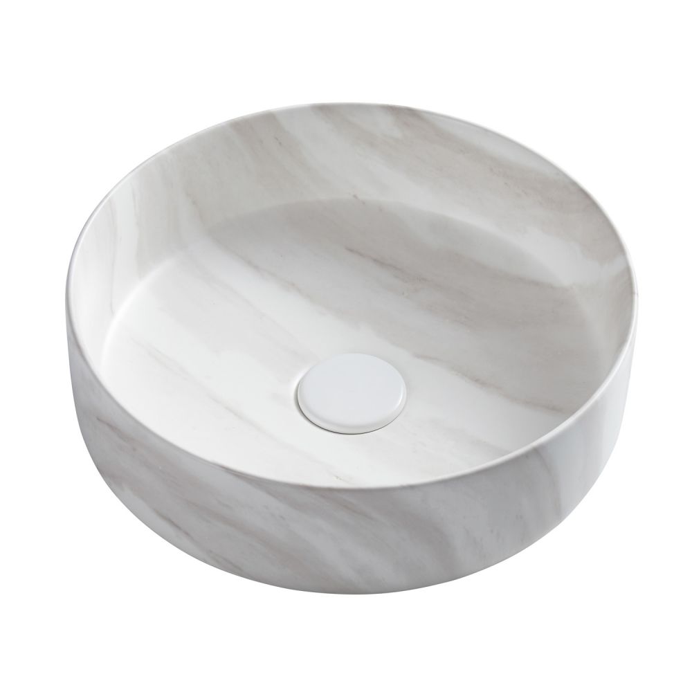 Раковина-чаша Azario 355х355х120 накладная, круглая, светлый мрамор AZ-3134-M817