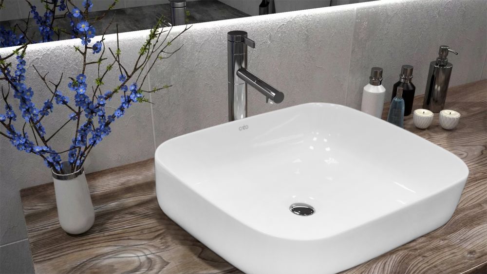 Раковина-чаша Creo Ceramique 500х400х140 накладная, прямоугольная, белый глянцевый PU4200