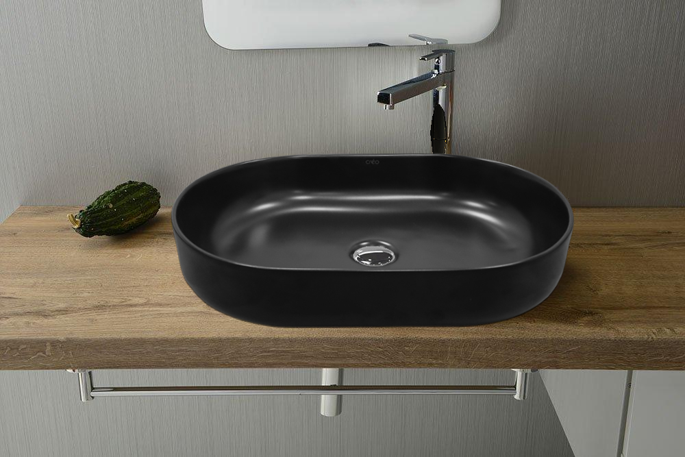 Раковина-чаша Creo Ceramique 580х380х140 накладная, овальная, керамика, черный матовый (PU4300MBK)