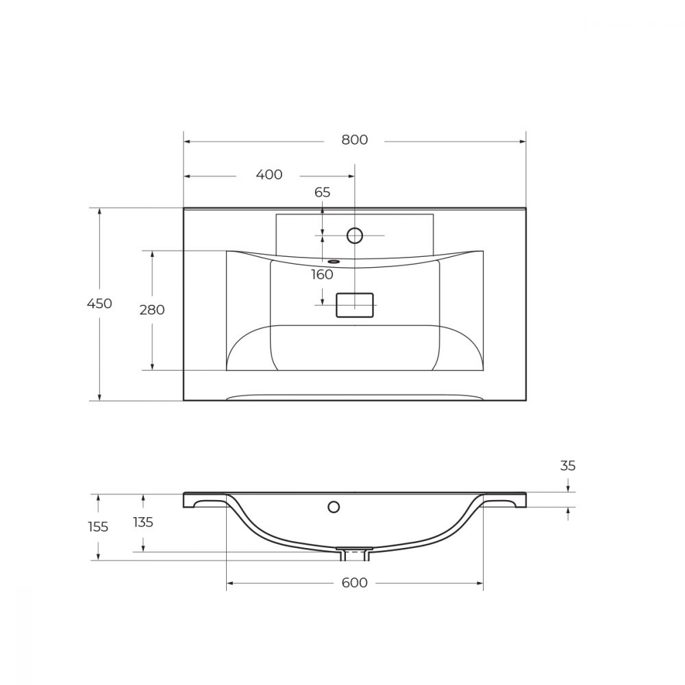 Раковина из литьевого мрамора, 800x450x150, BB800/450-LV-MR-PR