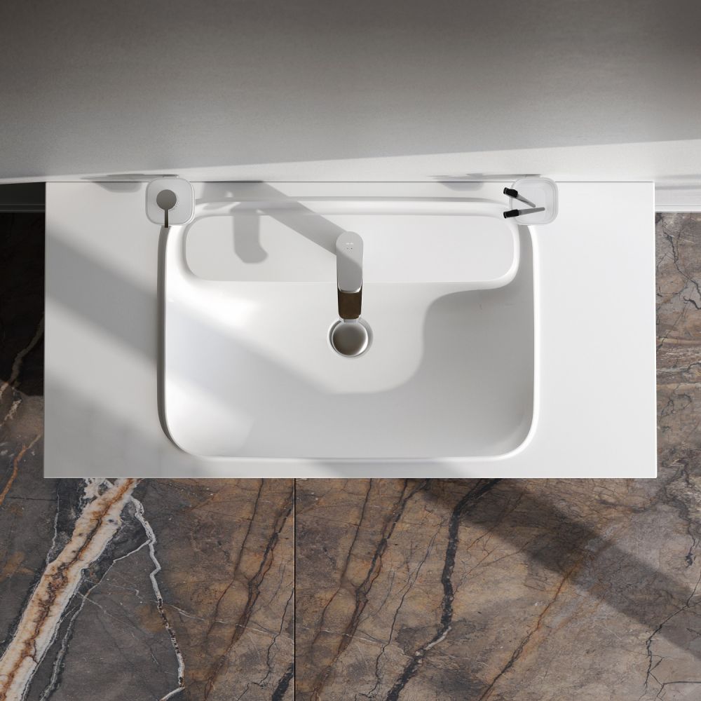 Коллекция модульной мебели Func отличается своей функциональностью вариативностью и мобильностью. Наши инженеры продумали и учли каждую деталь чтобы сделать взаимодействие с продуктами максимально простым и комфортным для всех членов семьи. Уникальная раковина интегрированная со столешницей. Дизайн разработки Design3 (Германия). Раковины выполнена из литьевого мрамора. Матовая поверхность раковины придает интерьеру ощущение уюта и комфорта. Бортик по контуру чаши и база под смеситель в виде острова - защищают от пролива воды.