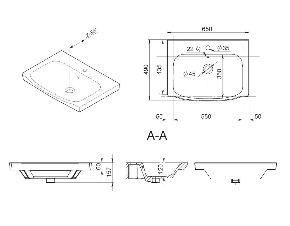 Раковина мебельная AM.PM Like 65 см M80WCC0652WG