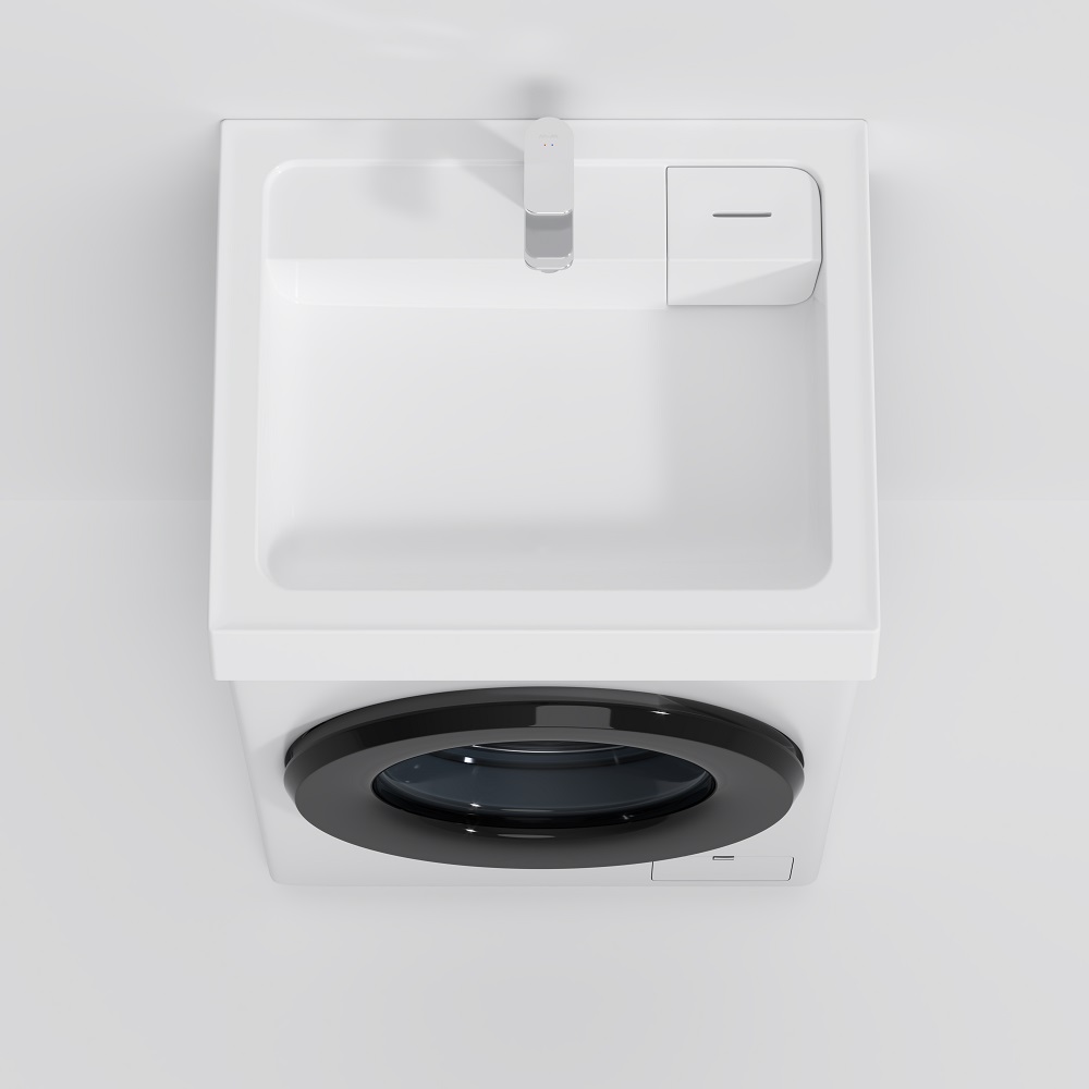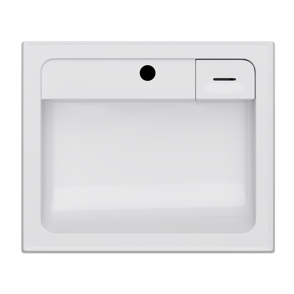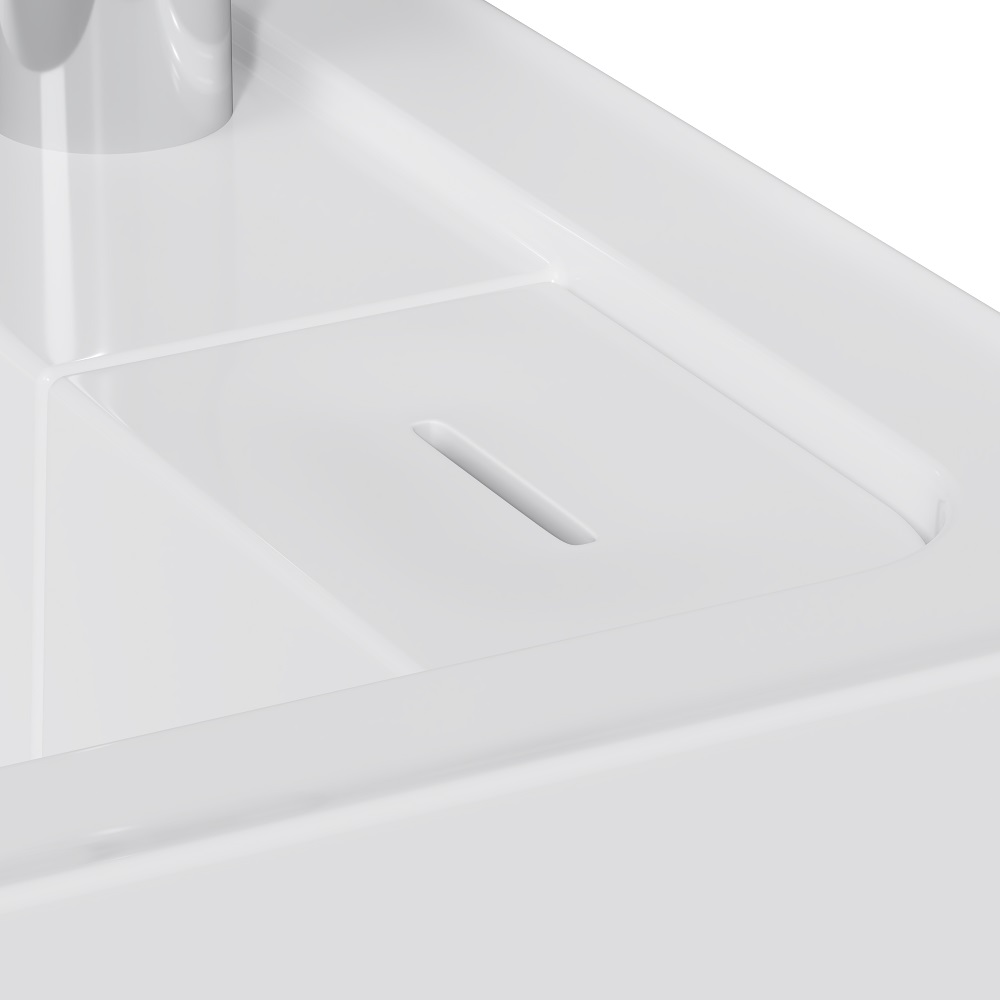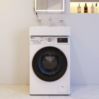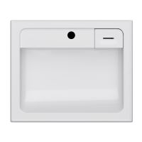 Раковина над стиральной машиной, 60 см AM.PM X-Joy M85AWCC0602WG подходит для интеграции с узкими стиральными машинами (глубиной от 32 до 45 см) Дизайнерская раковина из литьевого мрамора белоснежного цвета с бортиком, скрытым сливом и съемной мыльницей.