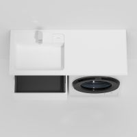 Долгожданное расширение в мебели X-Joy. Самое оптимальное и функциональное решение для организации пространства ванной комнаты с учетом размещения в ней стиральной машины. Подходит для интеграции с узкими стиральными машинами (глубиной от 32 до 45 см). Дизайнерская раковина из литьевого мрамора белоснежного цвета с бортиком скрытым сливом и съемной мыльницей. Раковина оснащена просторной столешницей на которой можно разместить косметические и гигиенические средства. Столешница защищает стиральную машину от повреждений и механических воздействий. Раковина совместима с тумбой X-Joy - M85AFSX0602WG