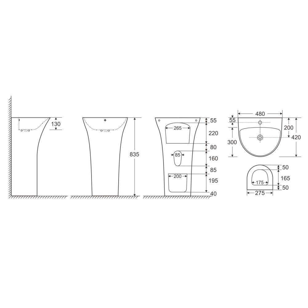 Раковина напольная AZARIO FRETTA ROUND 480x420x835 отдельностоящая (AZ-307)