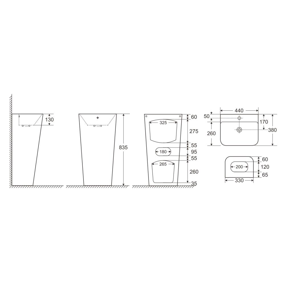 Раковина напольная AZARIO FRETTA SQUARE 440х380х835 отдельностоящая прямоугольная (AZ-302)