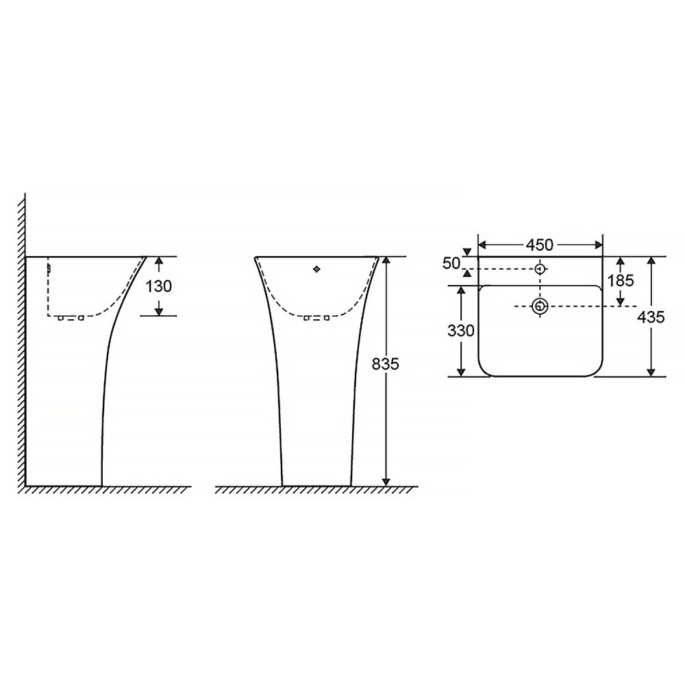 Раковина напольная AZARIO FRETTA SQUARE 450х435х835 отдельностоящая, прямоугольная (AZ-315)