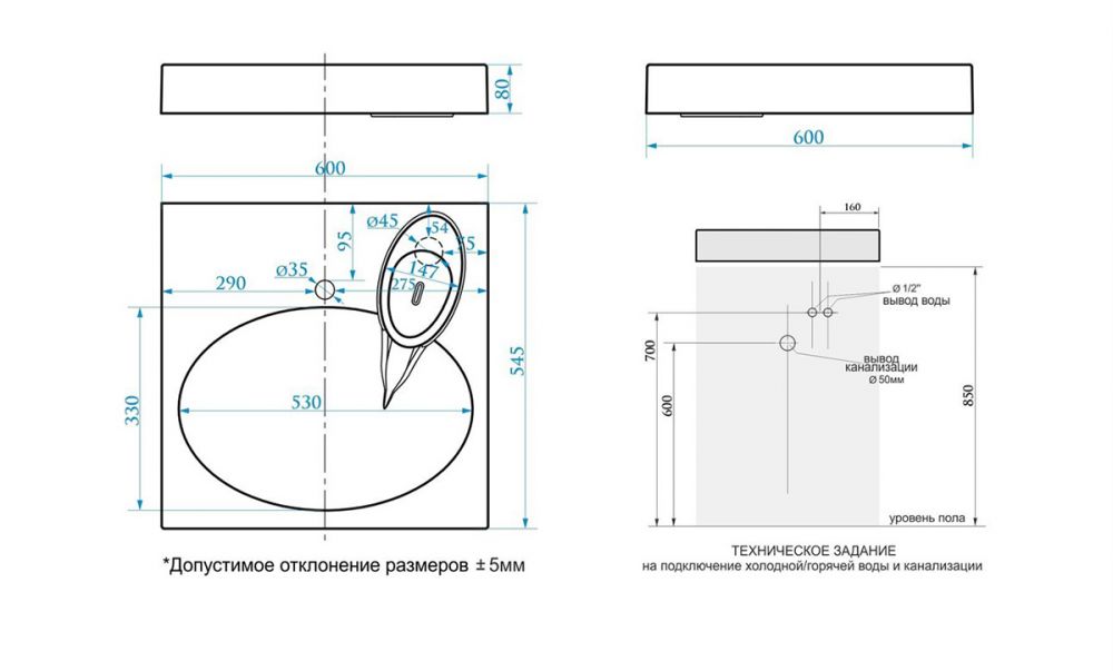 Раковина подвесная Azario Estet 600х545х80, белый CS00082259