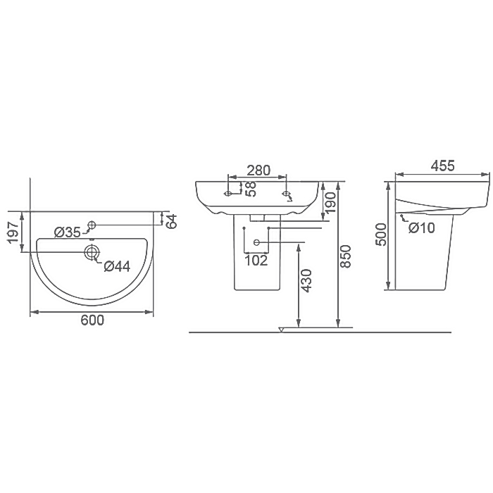 Раковина с полупьедесталом Creo Ceramique RENNES 600х455х500 керамика, белый глянцевый (RE3000+RE3050)