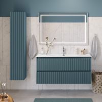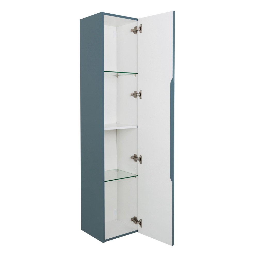 UNO Шкаф подвесной с фрезерованной ручкой с торца фасада с одной распашными дверцей доводчиками, с двумя полками, универсальный, 330x300x1600мм, Голубой Матовый, UNO-1600-1A-SC-AO