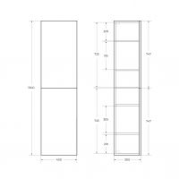 DUE Шкаф подвесной с двумя распашными дверцами с доводчиками, с двумя полками, универсальный, Сатин, 400x300x1500, DUE-1500-2A-SC-SAT-P