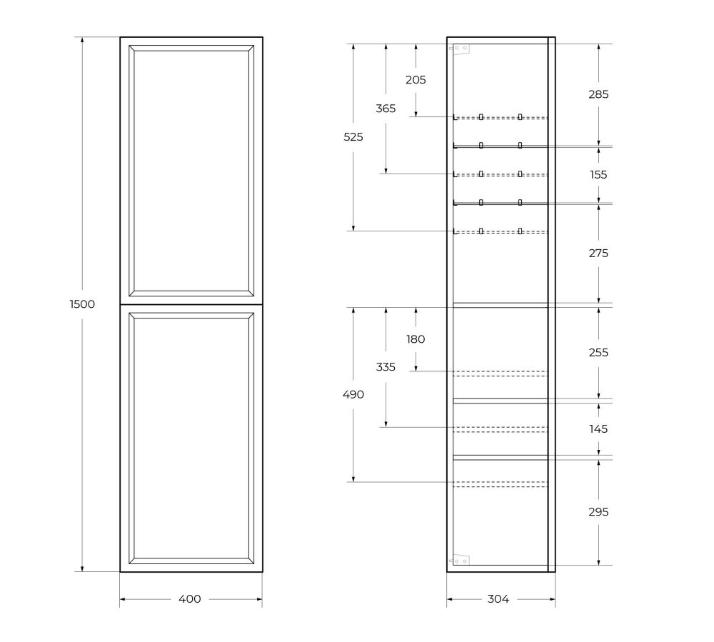GIUBILEO Шкаф подвесной с двумя распашными дверцами с доводчиками, с двумя полками, универсальный, Bianco Lucido, 400x300x1500, GIUBILEO-1500-2A-SC-BL