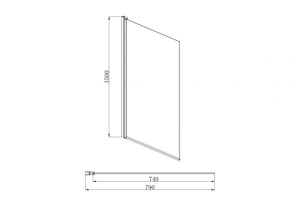 AQ DEL SBA 08015GM Шторка на ванну, одноэлементная, поворотная 800X1500 профиль оружейная сталь, стекло прозрачное