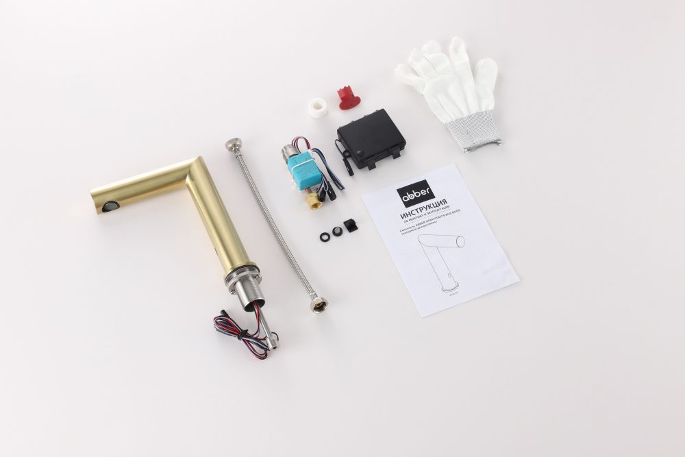 Смеситель от немецкого бренда сантехники ABBER Perfekte 316 AF8A101BGS сенсорный для раковины, золото брашированное