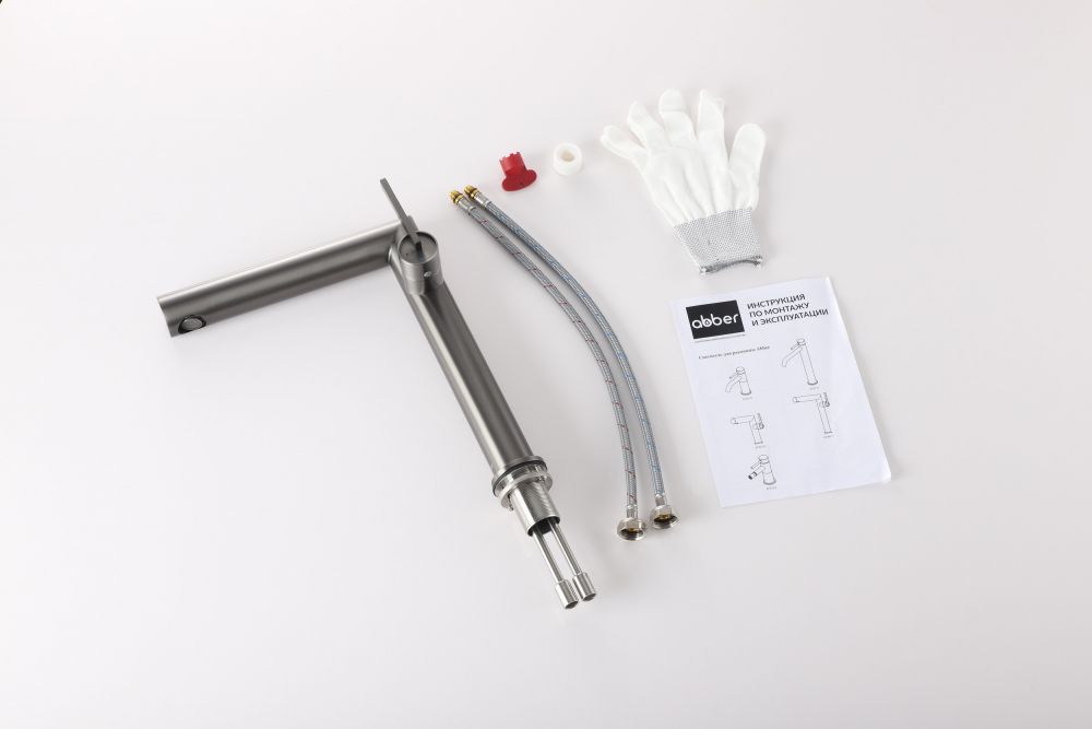 Смеситель от немецкого бренда сантехники ABBER Perfekte 316 AF8A11BGG-L для раковины, оружейная сталь брашированная