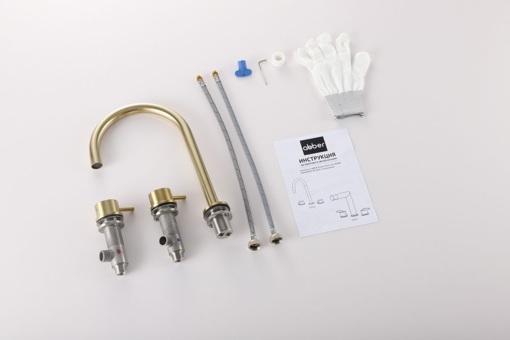 Смеситель от немецкого бренда сантехники ABBER Wasser Kreis 316 AF8108BG-M для раковины, золото брашированное