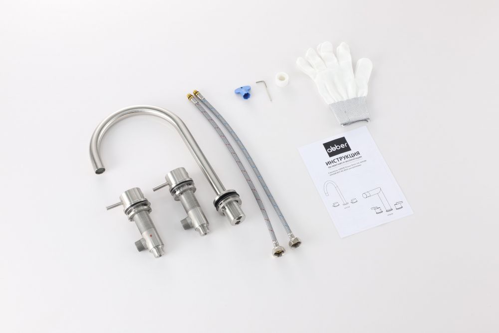 Смеситель от немецкого бренда сантехники ABBER Wasser Kreis 316 AF8108BST-M для раковины, сталь брашированная