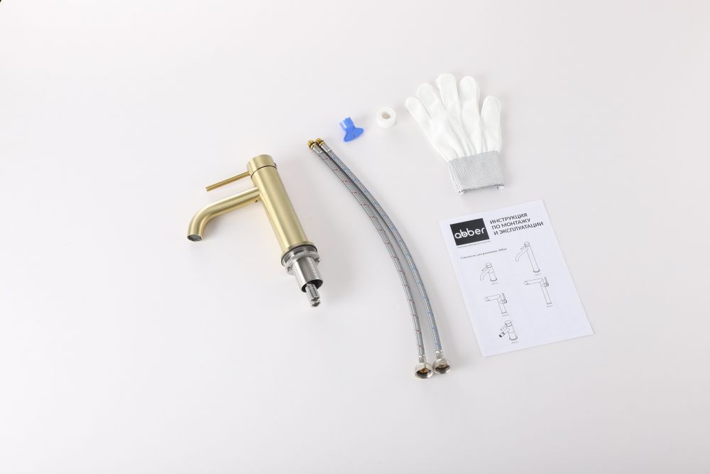 Смеситель от немецкого бренда сантехники ABBER Wasser Kreis 316 AF8110BG для раковины, золото брашированное