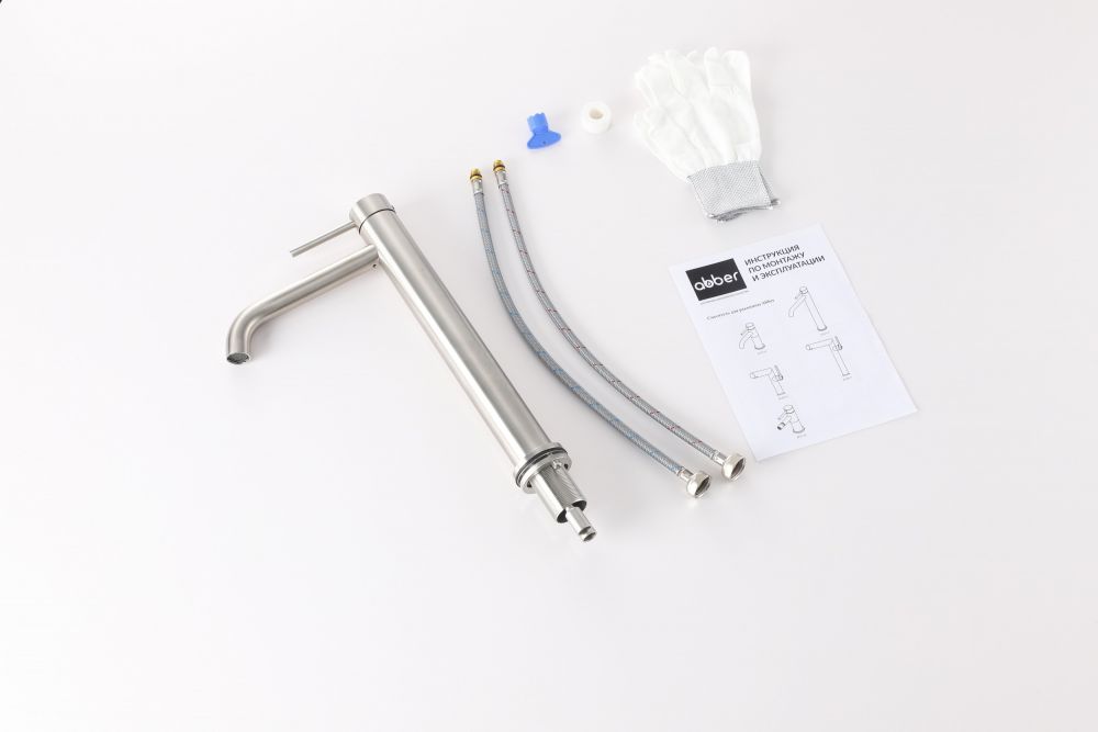 Смеситель от немецкого бренда сантехники ABBER Wasser Kreis 316 AF8111BST-L для накладной раковины, сталь брашированная