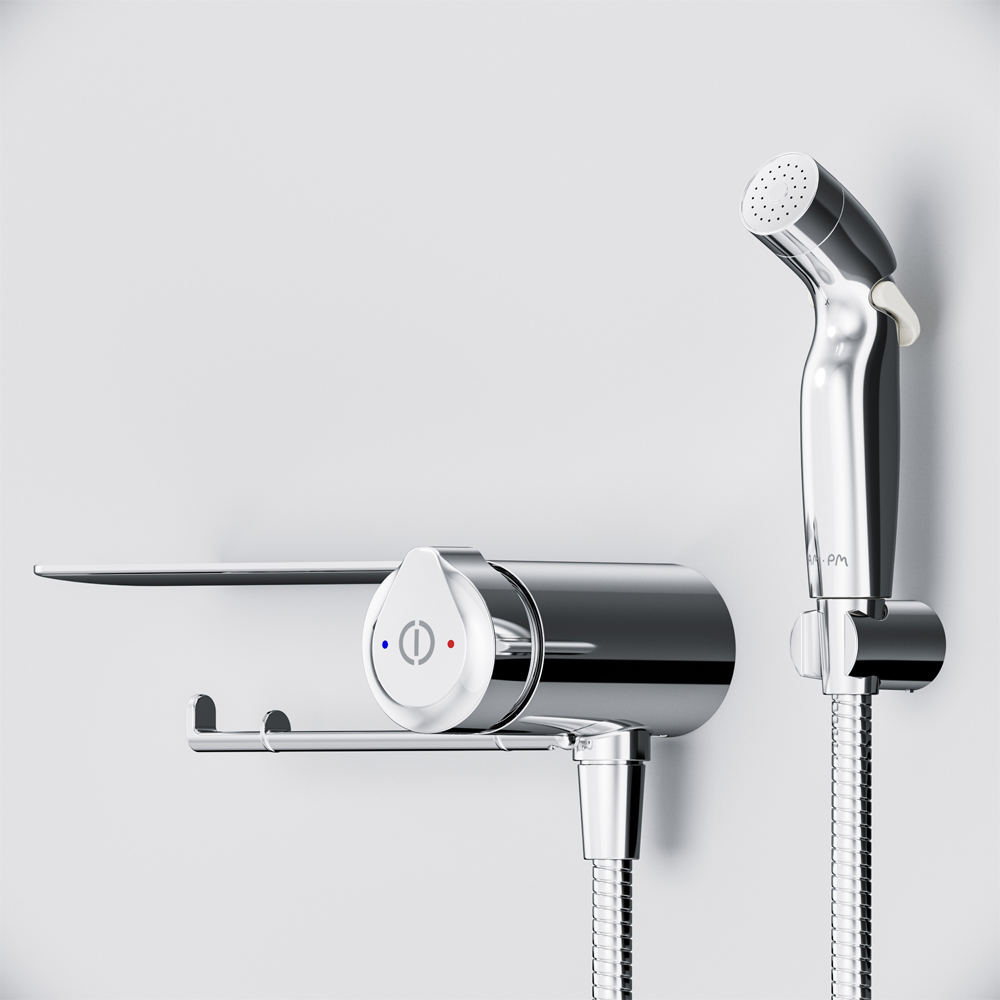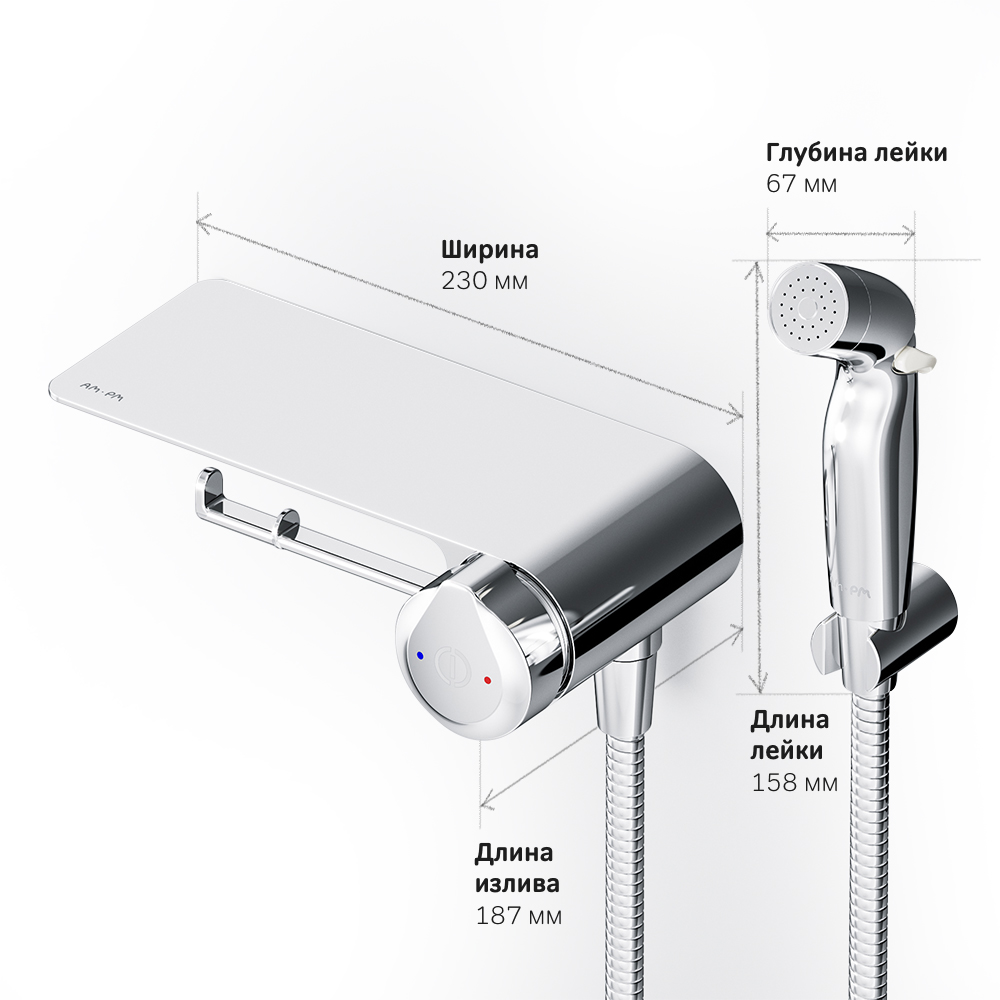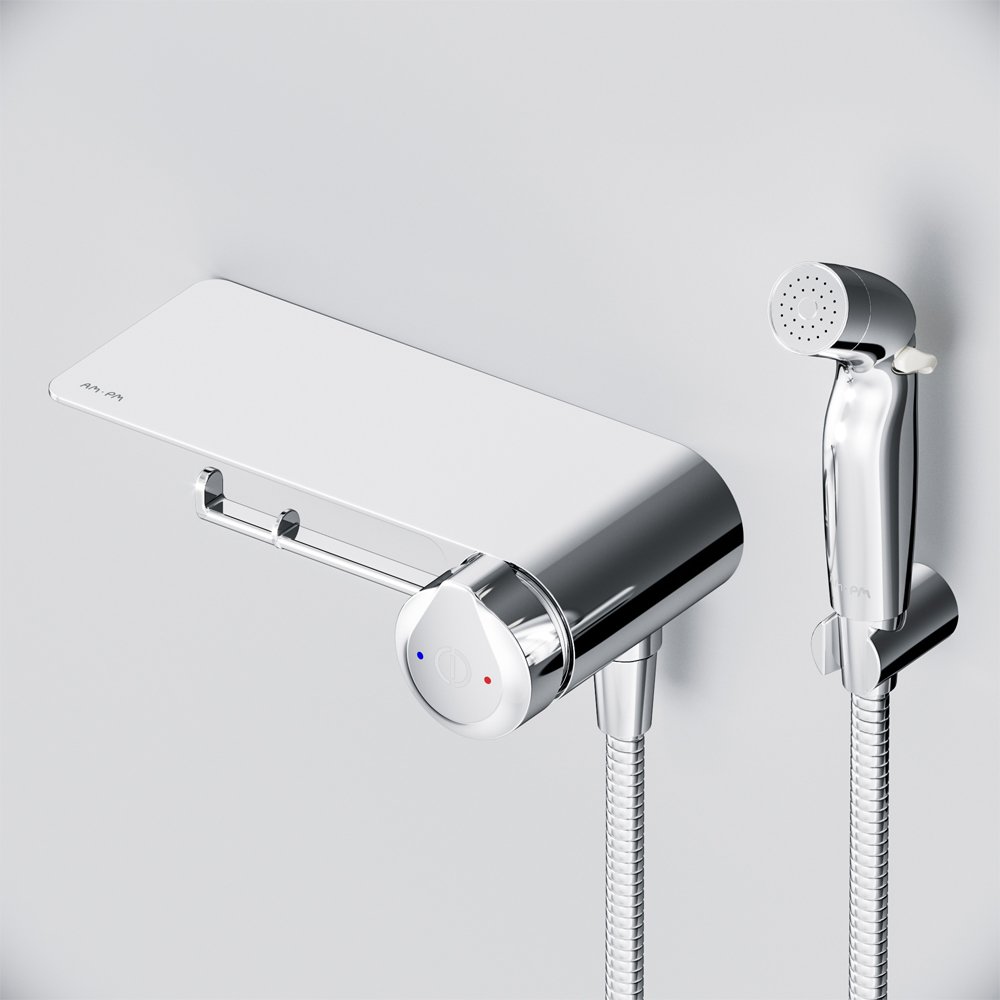 Смеситель AM.PM X-Joy TouchReel с гигиеническим душем и полкой, хром F0H85A800