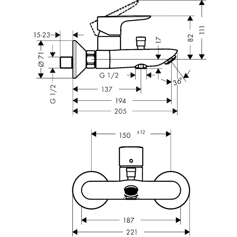 Смеситель Hansgrohe Talis E для ванны с душем однорычажный, черный матовый (71740670)