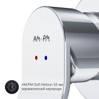 Смесители X-Joy – по-настоящему дизайнерские продукты в своем ценовом сегменте. Разработанные дизайн-агентством GP designpartners из Австрии в 2019 году смесители были удостоены престижной премии Red Dot Design Awards знака качества известного всему миру. Смеситель X-Joy оборудован специально спроектированным для AM.PM керамическим картриджем SoftMotion 35 мм который обеспечивает оптимальную регулировку температуры а также позволяет выдерживать любые перепады давления. Корпус смесителя X-Joy изготовлен по принципу цельного литья из латуни. Покрытие Everlast – вдвое превышает отраслевые стандарты по прочности и износостойкости. Ювелирный блеск и прочность покрытия достигаются по стандарту Chrome plating standard NSS 80H. Отдельная гарантия на корпус и покрытие – 10 лет в два раза больше чем принято по европейским стандартам.