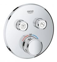 Смеситель для душа Grohe Grohtherm SmartControl 29119000 с термостатом. Встраиваемый смеситель воплощает в себе высокие стандарты качества в сочетании с комфортом и функциональностью. Характеристики: Материал: латунь. Цвет: хром. Покрытие Grohe StarLight гарантирует длительную износостойкость смесителя без царапин с сияющей чистотой. Металлическая накладная панель с системой быстрого монтажа Grohe QuickFix позволяет установить смеситель за считанные минуты (скрытые эксцентрики, уплотнение, скрытый монтаж), регулируемая на 6 градусов. Система SmartControl: нажать для включения/выключения, повернуть для увеличения напора воды от режима EcoJoy до максимального напора воды. Стопор безопасности при 38 градусах Grohe SafeStop, опционально стопор при 43 градусах. Возможность одновременного включения нескольких точек водоотвода. Распределение расхода: выход B - 24 л/мин, выход C - 26 л/мин. Стандарт подключения: G 1/2. В комплекте поставки: смеситель (внешняя часть).