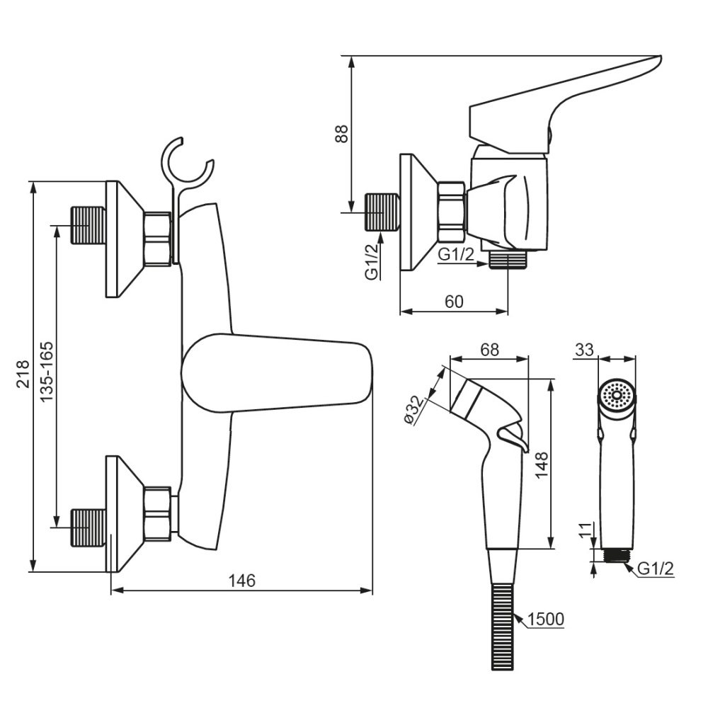Смеситель для душа с гигиеническим душем Damixa Jupiter Черный, 778000300