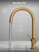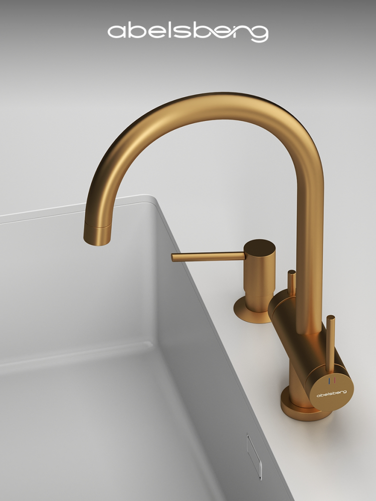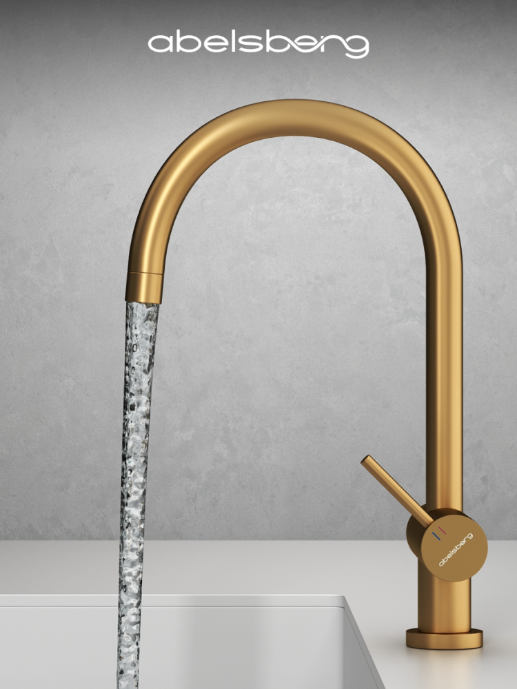 Смеситель для кухни ABELSBERG Aera с возможностью подключения фильтра для воды, цвет королевское золото, PVD покрытие, арт. AWF70029BG