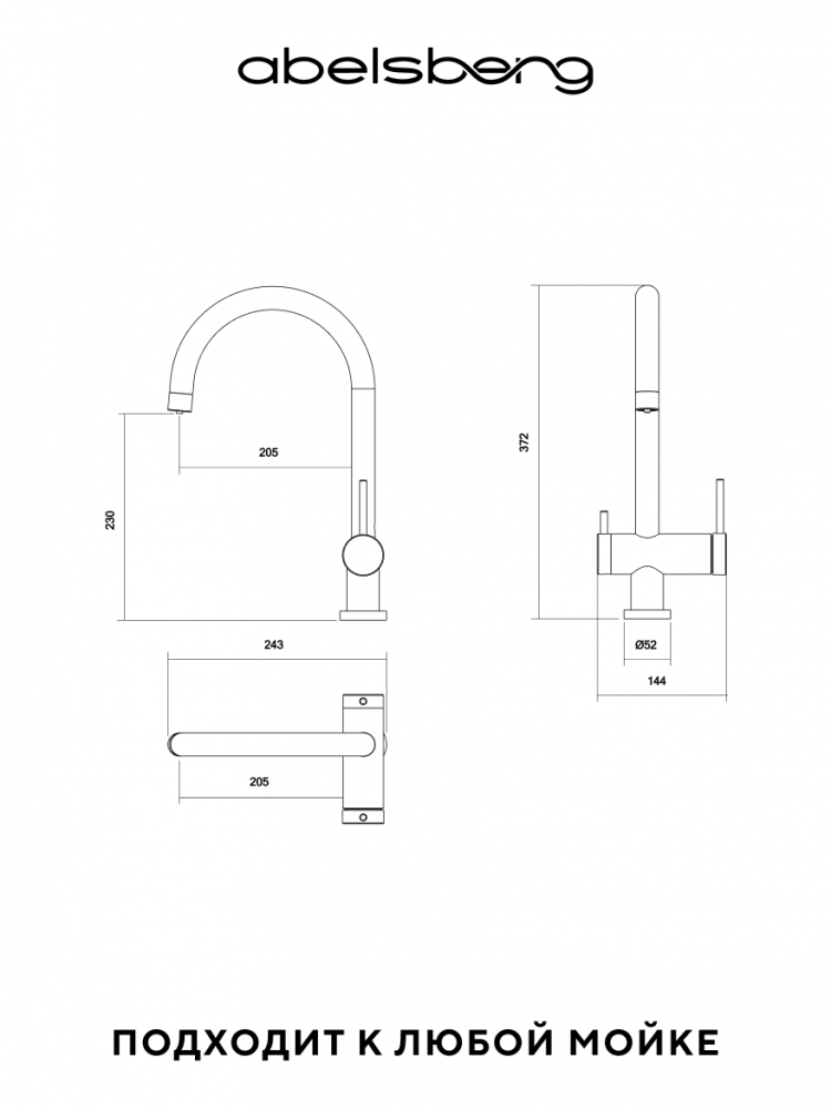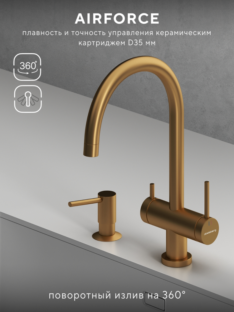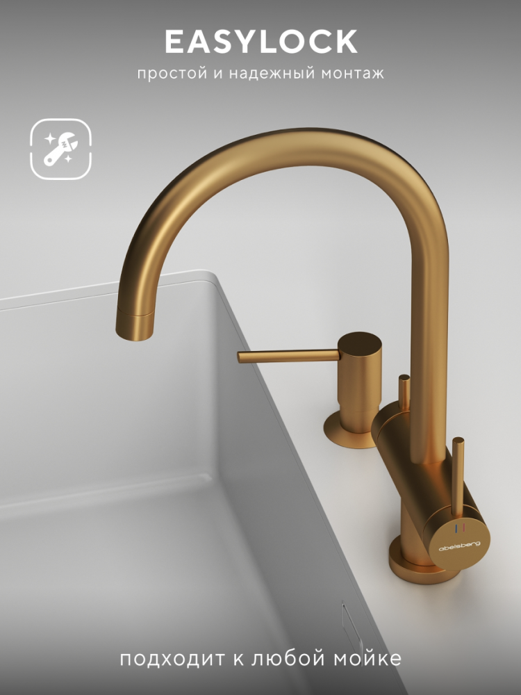Смеситель для кухни ABELSBERG Aera с возможностью подключения фильтра, королевское золото, AWF70029BG
