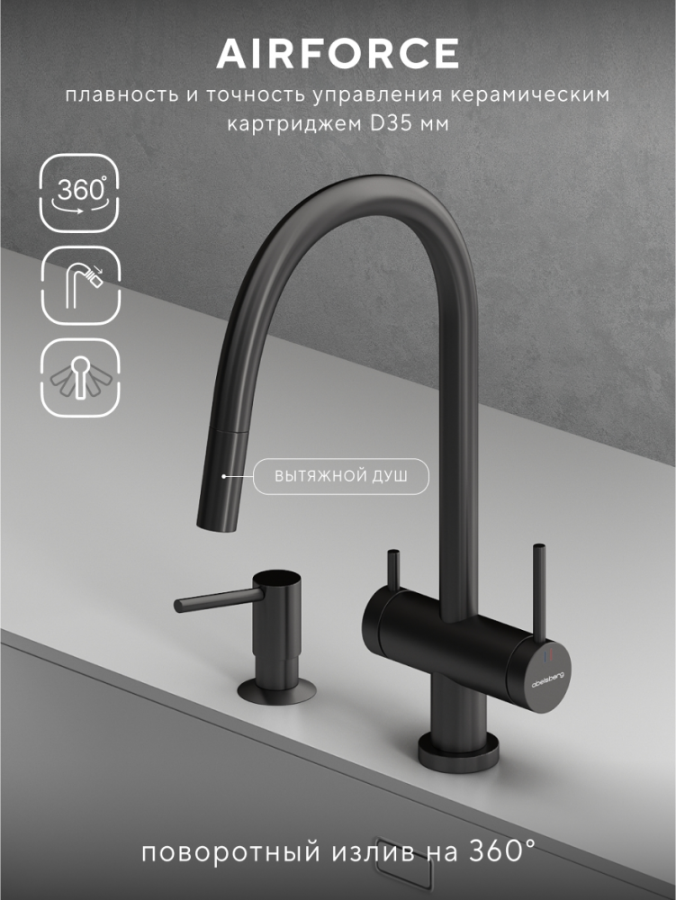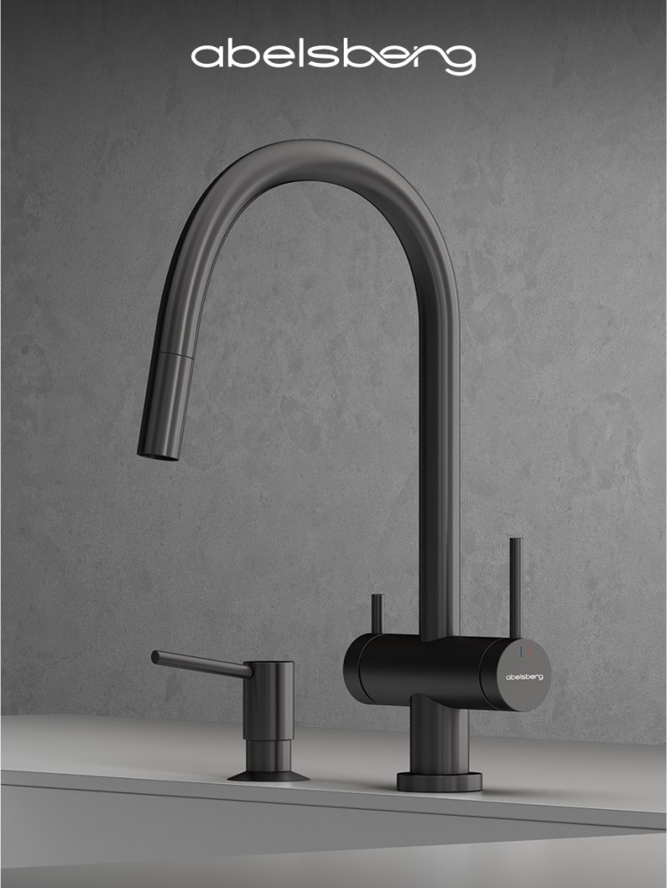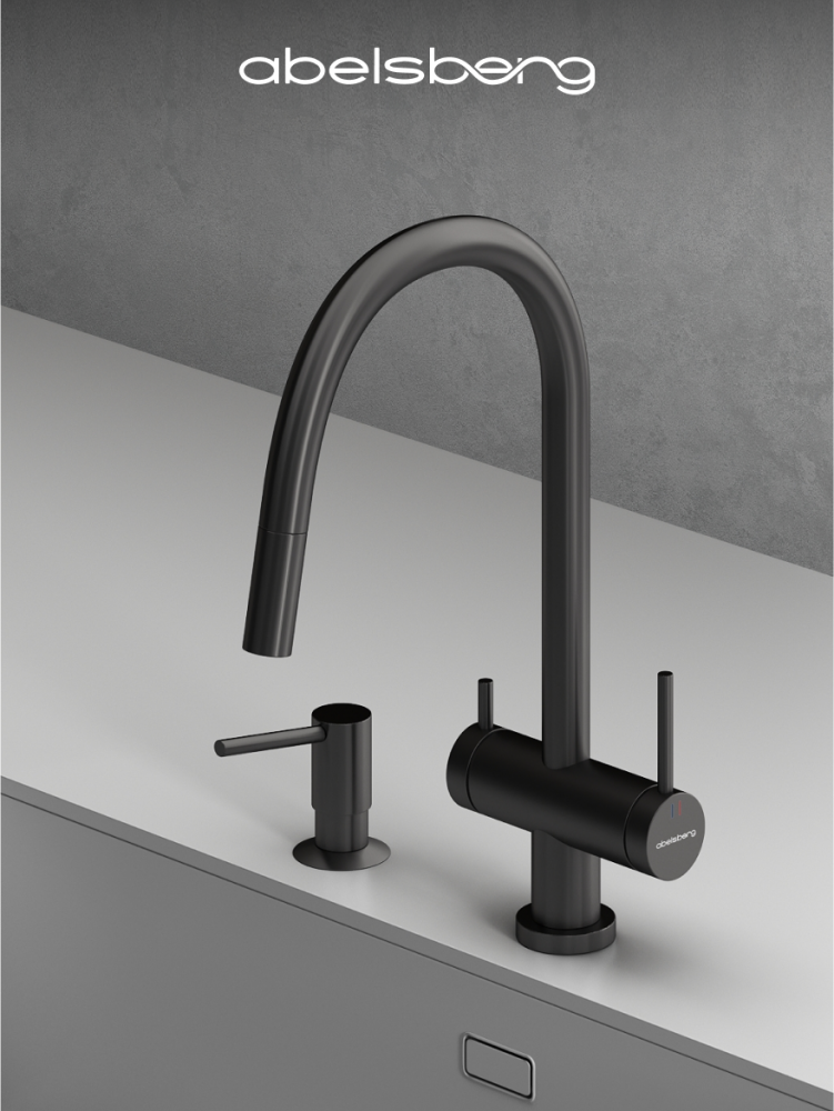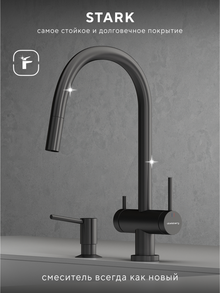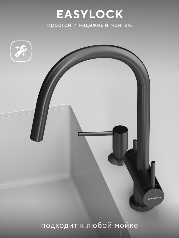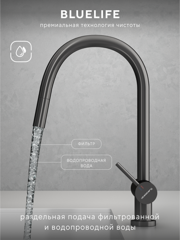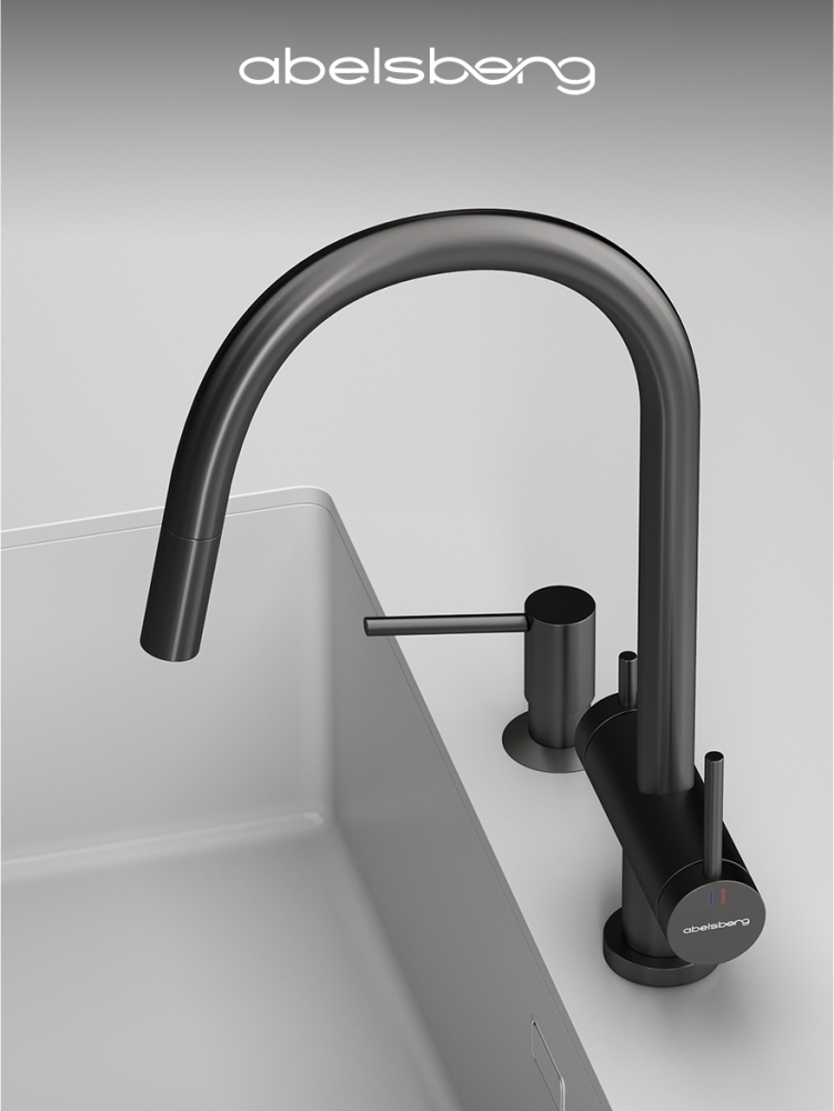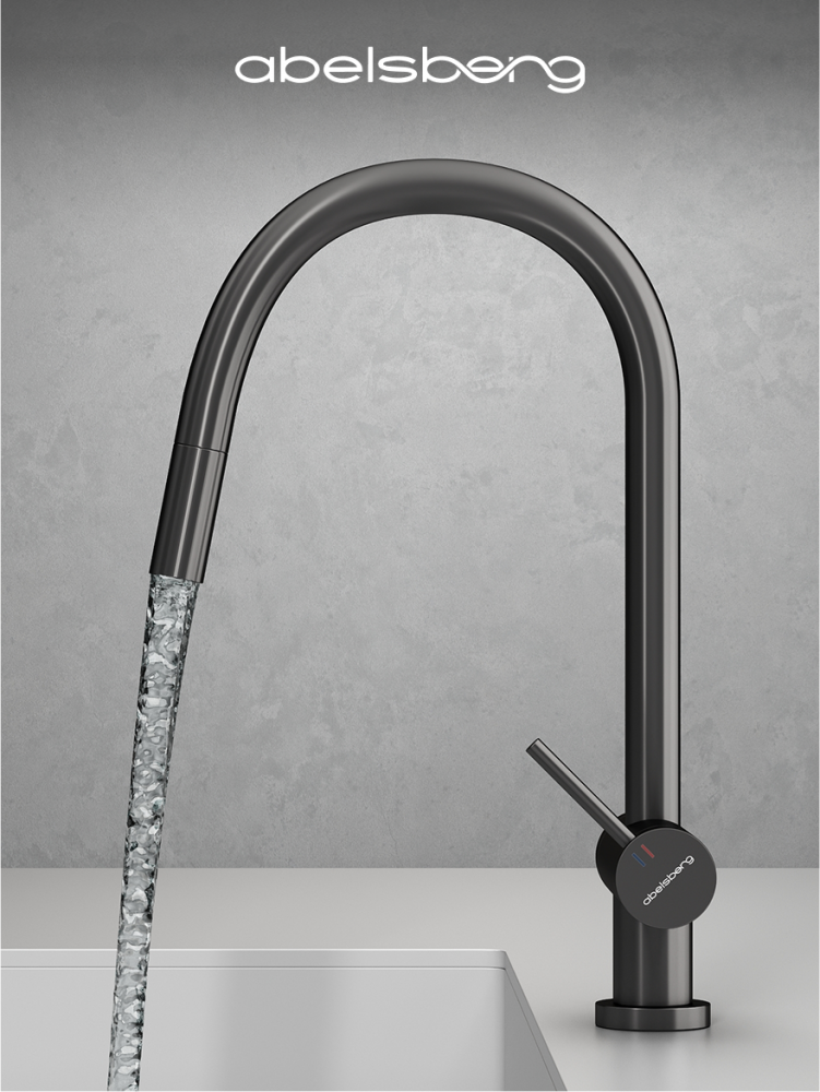 Смеситель для кухни ABELSBERG Aera c вытяжным изливом и возможностью подключения фильтра для воды, цвет космическая сталь, PVD покрытие, арт. EMF71709GM