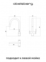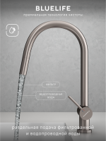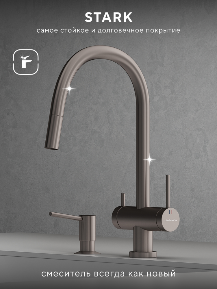 Смеситель для кухни ABELSBERG Aera c вытяжным изливом и возможностью подключения фильтра для воды, цвет титан, PVD покрытие, арт. EMF71709BN