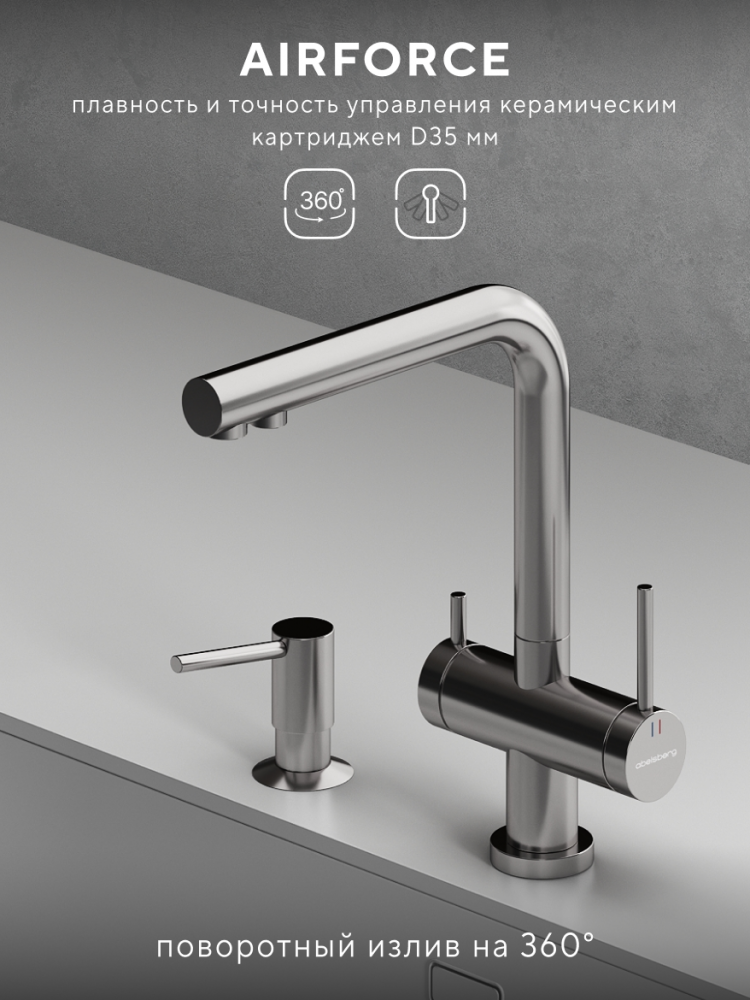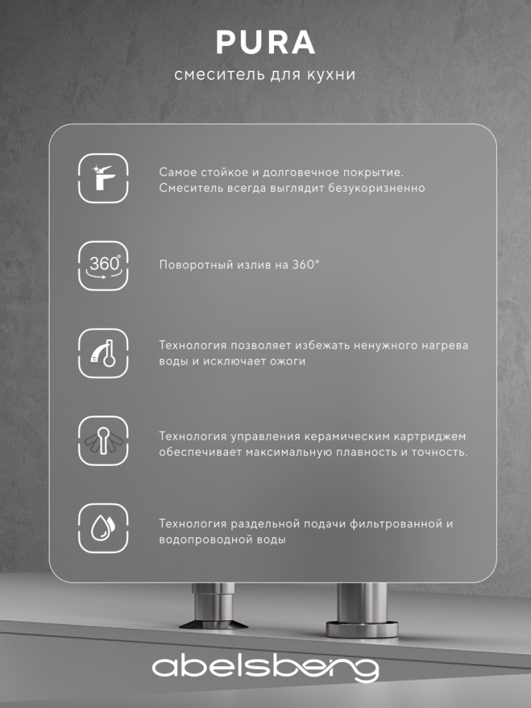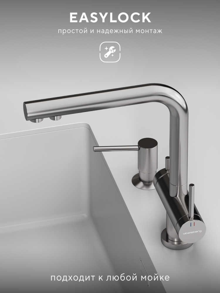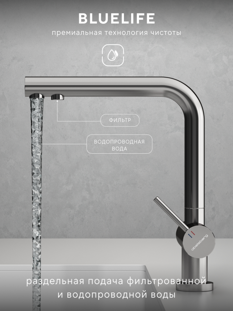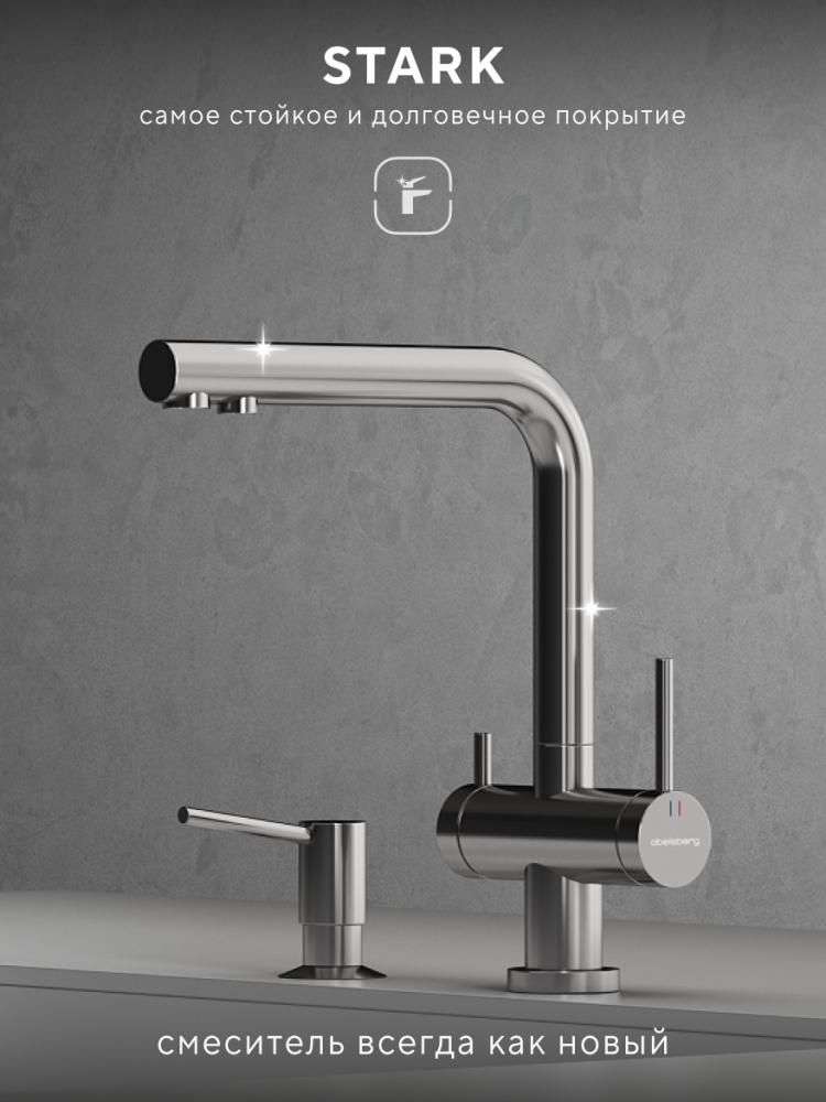 Смеситель для кухни ABELSBERG Pura c возможностью подключения фильтра для воды, цвет глянцевый хром, арт. UVF70929CH