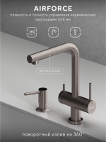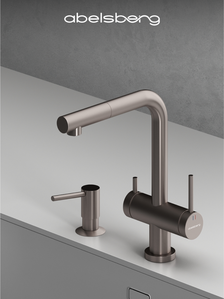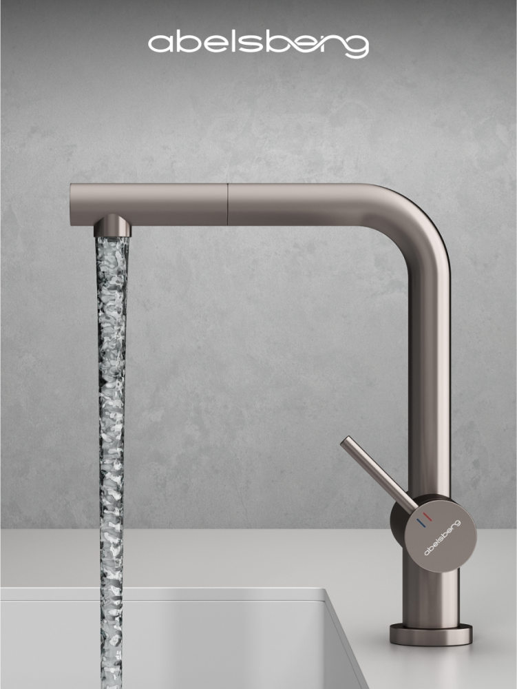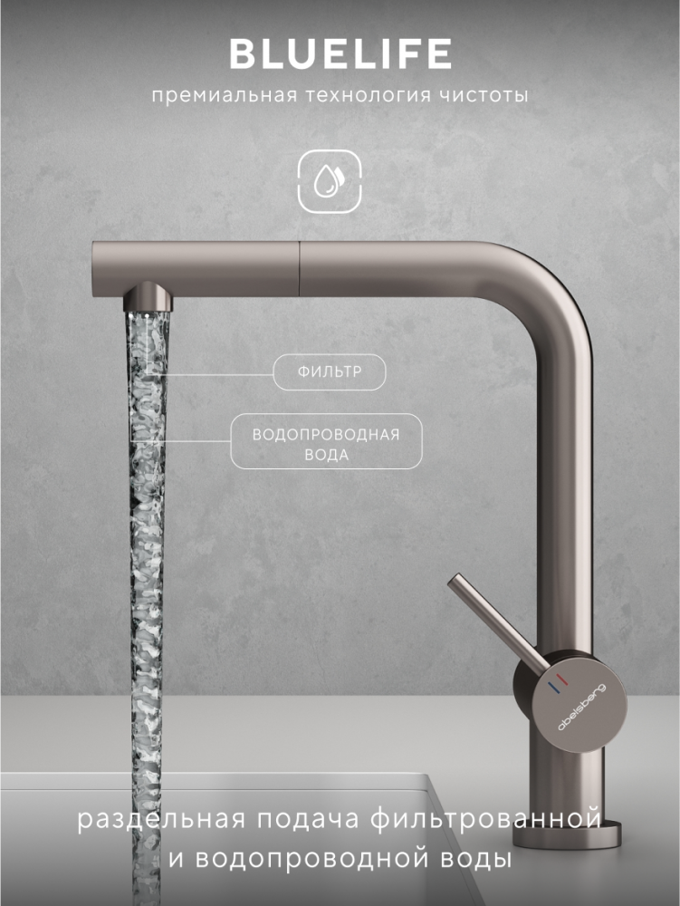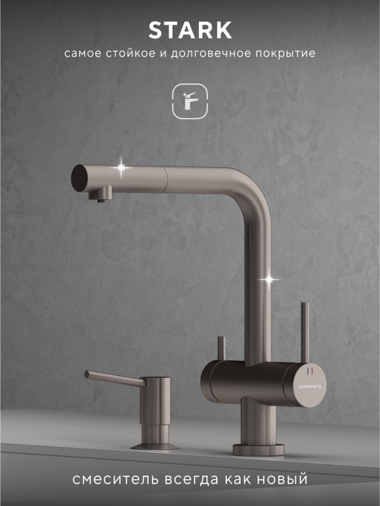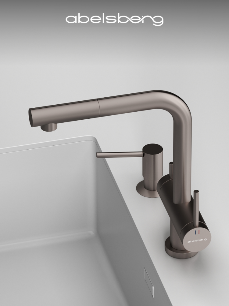Смеситель для кухни ABELSBERG Pura c вытяжным изливом и возможностью подключения фильтра для воды, цвет титан, PVD покрытие, арт. OTF70709BN