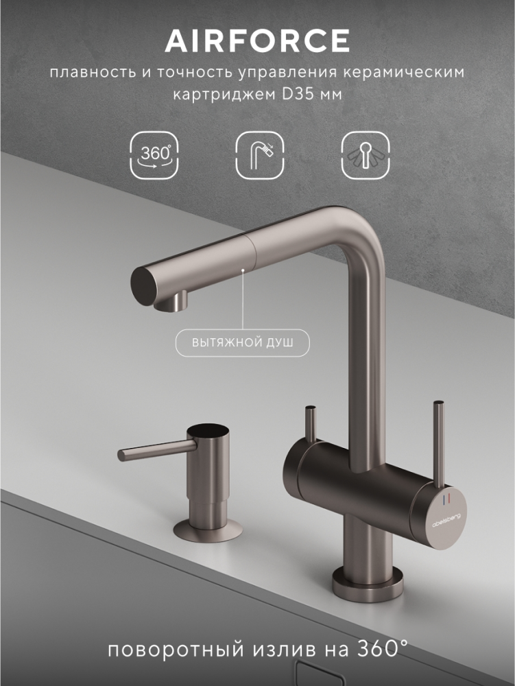 Смеситель для кухни ABELSBERG Pura с вытяжным изливом, титан, OTF70709BN