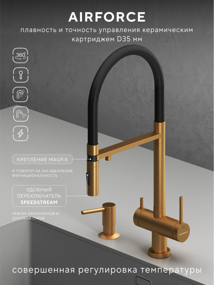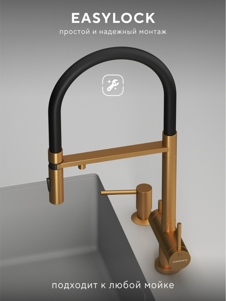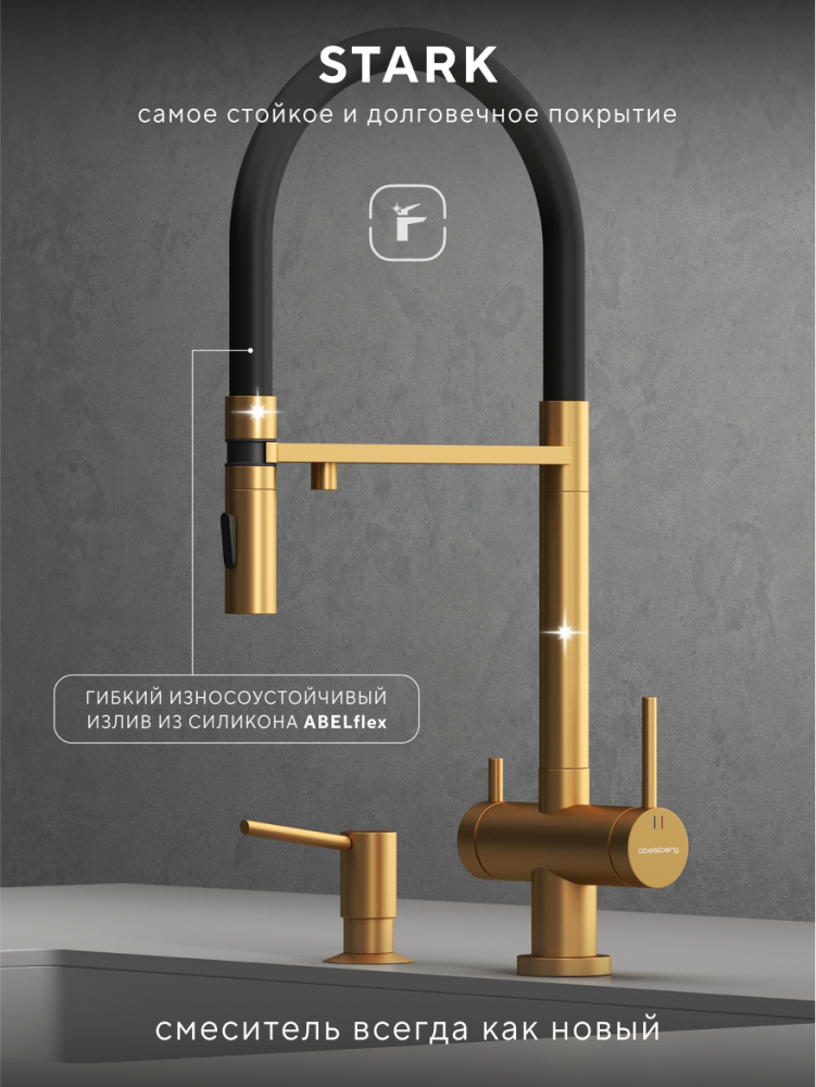 Смеситель для кухни ABELSBERG Venta с гибким изливом, королевское золото, IXF73979BG
