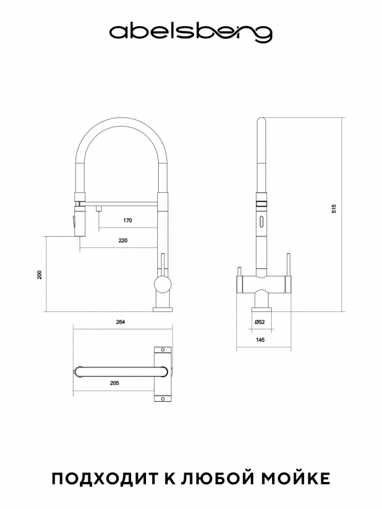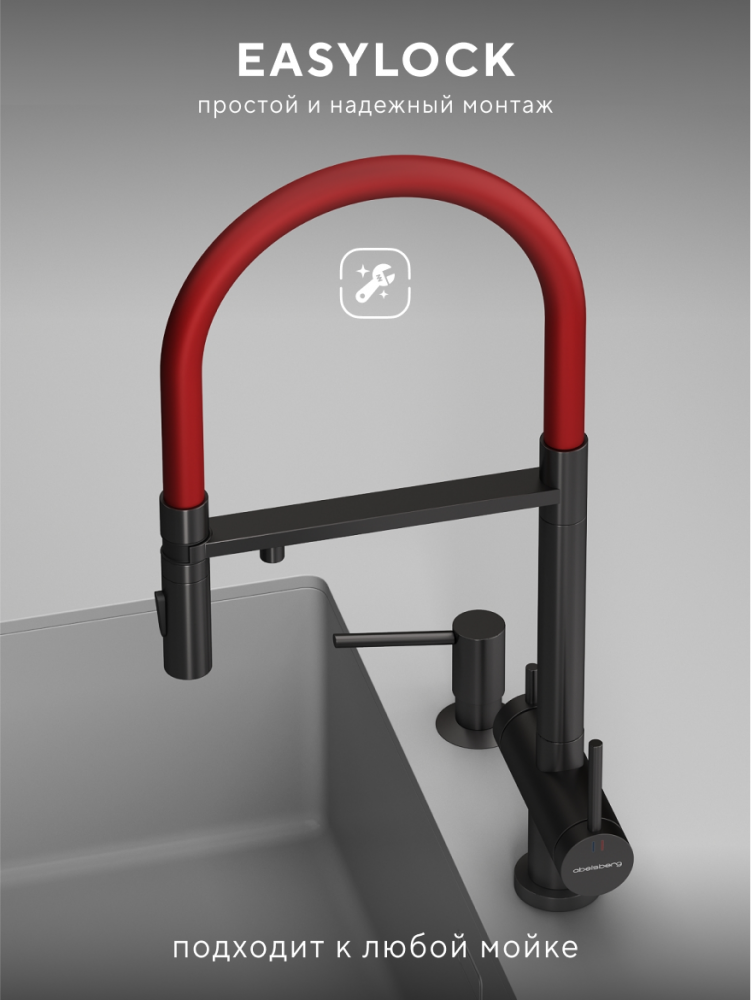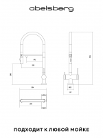 Смеситель для кухни ABELSBERG Venta с гибким изливом, космическая сталь, IXF73979GM