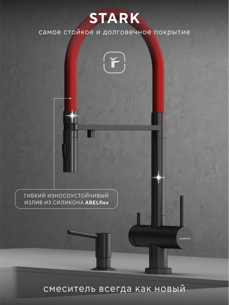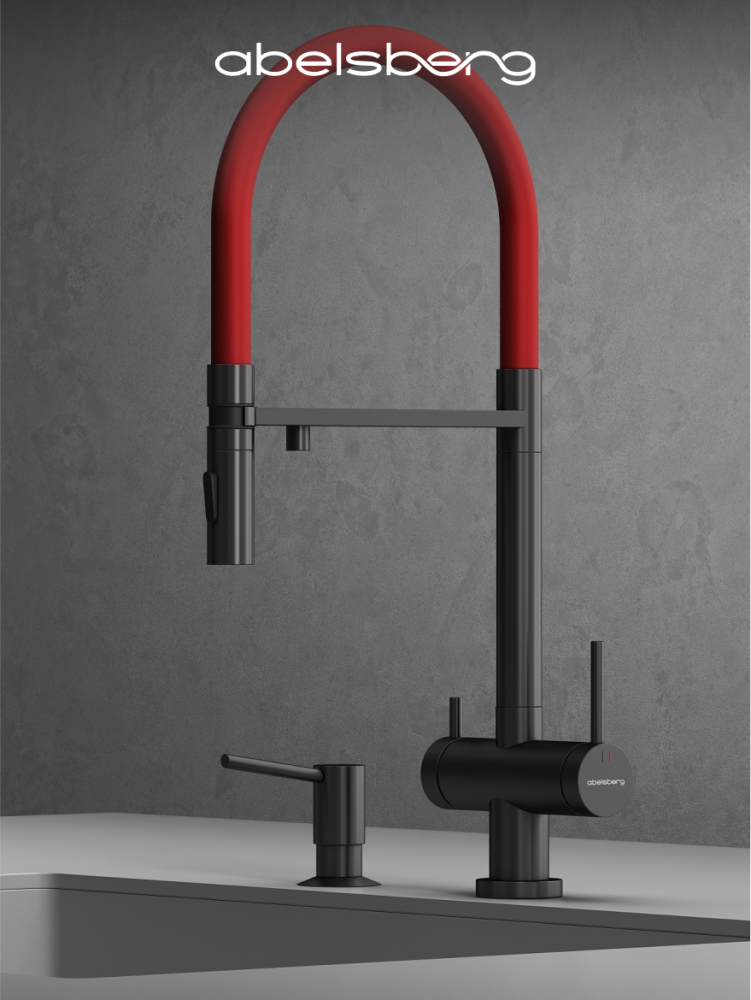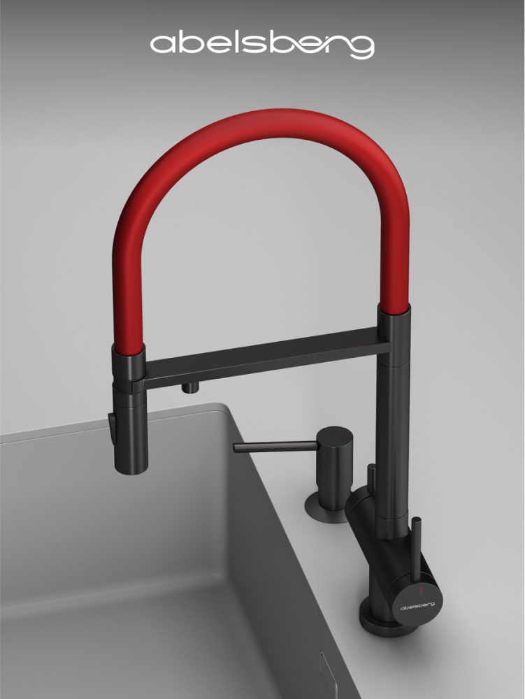 Смеситель для кухни ABELSBERG Venta c гибким изливом и возможностью подключения фильтра для воды, цвет космическая сталь, PVD покрытие, арт. IXF73979GM