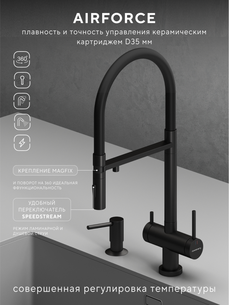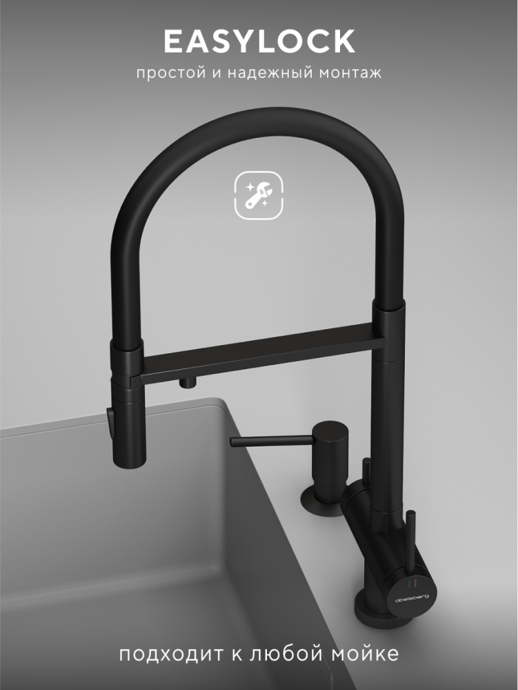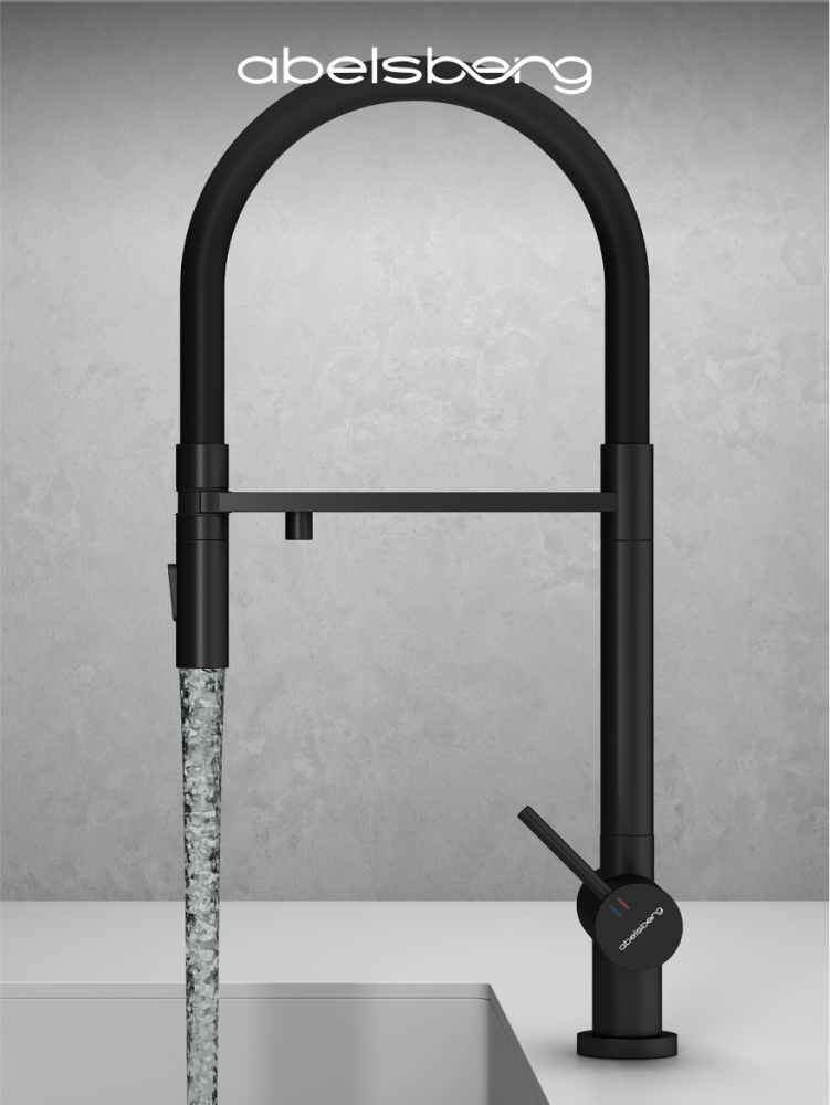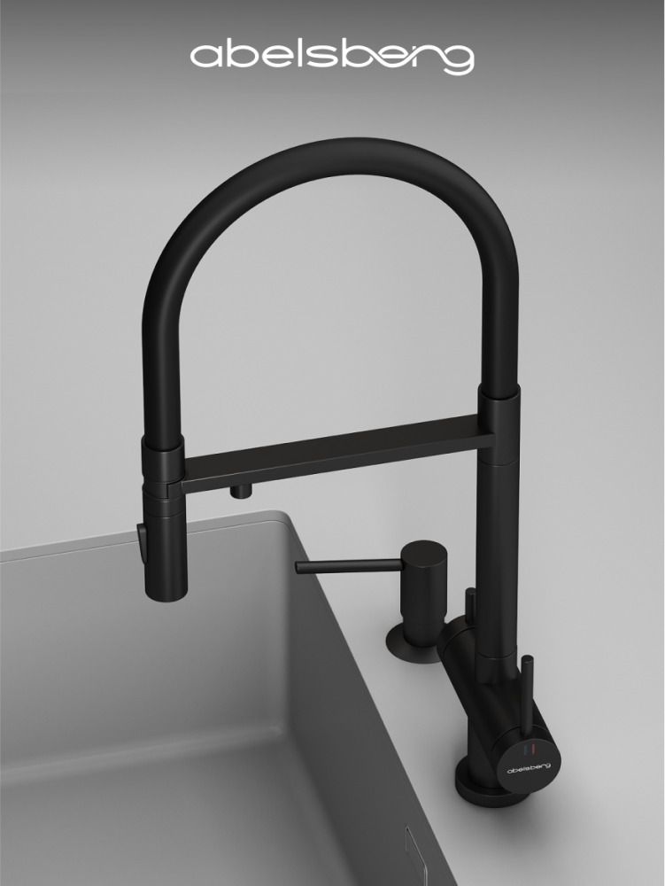 Смеситель для кухни ABELSBERG Venta с гибким изливом, вулканический черный, IXF73979MB
