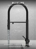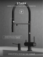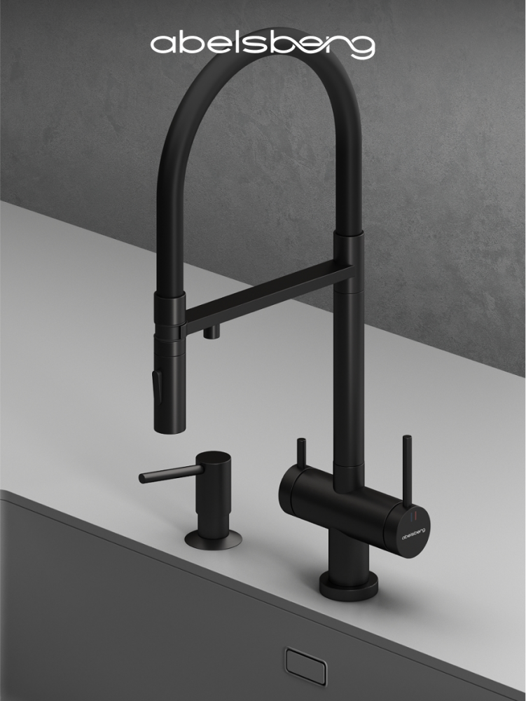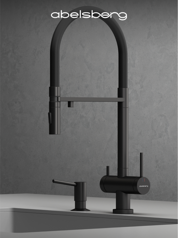 Смеситель для кухни ABELSBERG Venta c гибким изливом и возможностью подключения фильтра для воды, цвет вулканический черный, арт. IXF73979MB