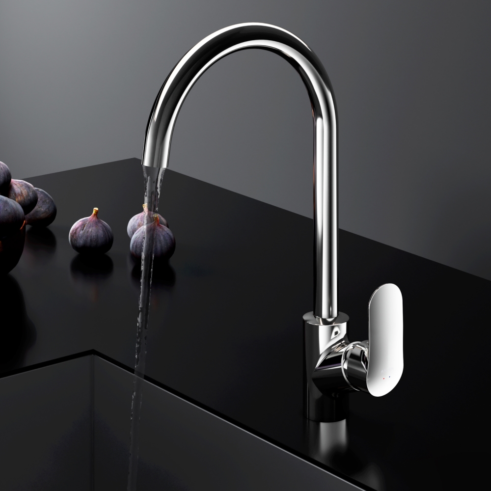 Максимальный комфорт: плавное вращение поворотного излива в любом направлении обеспечивает непревзойденное удовольствие от использования и удобство в работе на кухне.