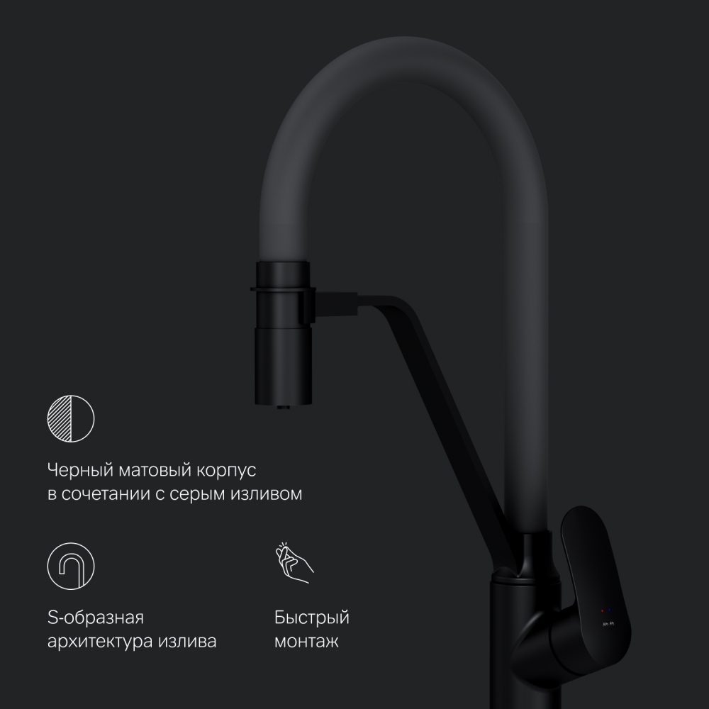 Безусловный лидер среди кухонных смесителей бренда – стильный и функциональный смеситель с профессиональным изливом и встроенным каналом для питьевой воды из культовой коллекции Like. Гибкий излив значительно расширяет зону использования смесителя гарантирует легкий уход за мойкой и наполнение емкостей любого размера. Излив устойчив к загрязнениям перегибам и внешним воздействиям. Удобный магнитный притягиватель для фиксации излива. Смеситель оснащен встроенным каналом для питьевой воды. Благодаря прогрессивной технологии Fresh Boost при вращении ручки на 90 градусов вы можете наслаждаться чистой питьевой водой. Для получения обычной воды просто управляйте смесителем привычным способом. Эксклюзивная разработка для АМ.РМ: специально спроектированный керамический картридж SoftMotion 35 мм обеспечивает низкий уровень шума выдерживает любые перепады давления в водопроводной сети. Трендовое сочетание цветов - матовый черный корпус смесителя и серый цвет излива идеально впишется в любой современный интерьер кухни.