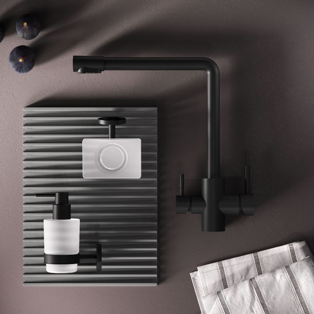 Смеситель для кухни AM.PM с L-изливом с каналом для питьевой воды, черный X-Joy S F85B05722, черный