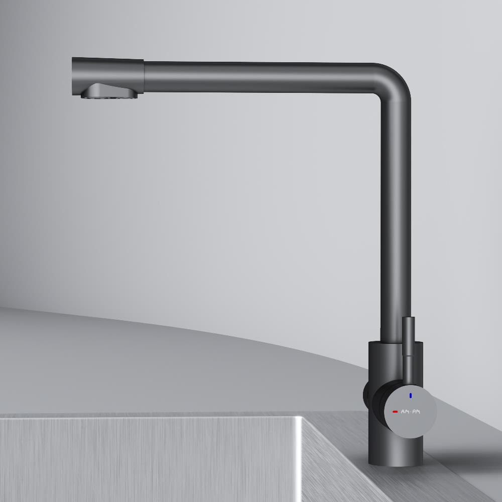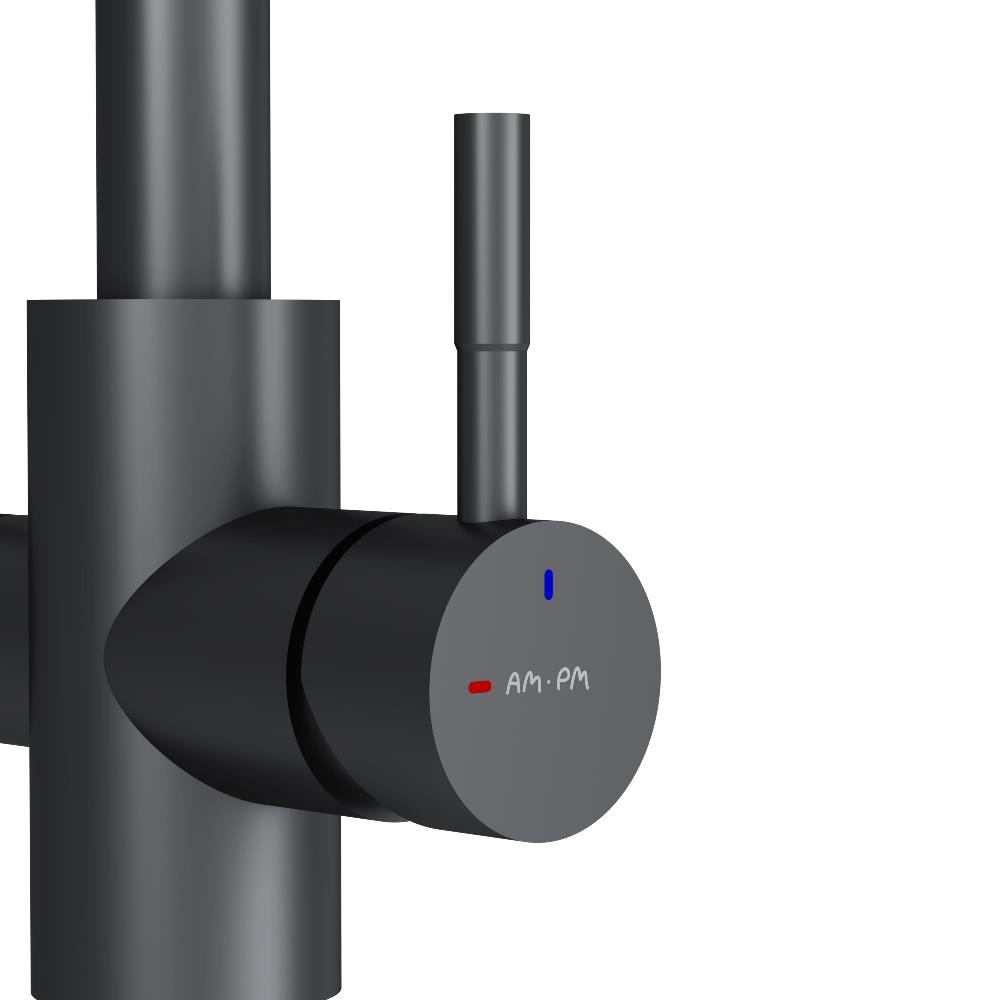 Встречайте пополнение экстраординарной коллекции X-Joy S – кухонные смесители с каналом для питьевой воды и функцией EcoStart. Эргономичный дизайн продуктов был разработан собственной дизайн-студией AM.PM в Германии. Смеситель оснащен встроенным каналом для питьевой воды. Для получения питьевой воды воспользуйтесь ручкой расположенной с левой стороны корпуса для получения обычной воды просто управляйте смесителем привычным способом. Функция EcoStart —стильное и экологичное решение для вашего дома. При включении смесителя в центральном положении автоматически потечет холодная вода. Для включения горячей воды – необходимо повернуть ручку влево. Поворот ручки вправо заблокирован. Оптимизация диапазона действия ручки смесителя сокращает нерациональный расход воды до 40% в месяц. EcoStart сочетает удобство использования с экономией ресурсов заботясь не только о вашем бюджете но и об окружающей среде. Эксклюзивное покрытие Everlast – вдвое превышает отраслевые стандарты по прочности и износостойкости. Черный матовый цвет сделает этот смеситель главным акцентом в любом интерьере. L-образная архитектура смесителя идеально подойдет для использования с мойкой любого размера и значительно упростит такие задачи как наполнение больших емкостей. Черный матовый цвет сделает этот смеситель главным акцентом в любом интерьере. ""