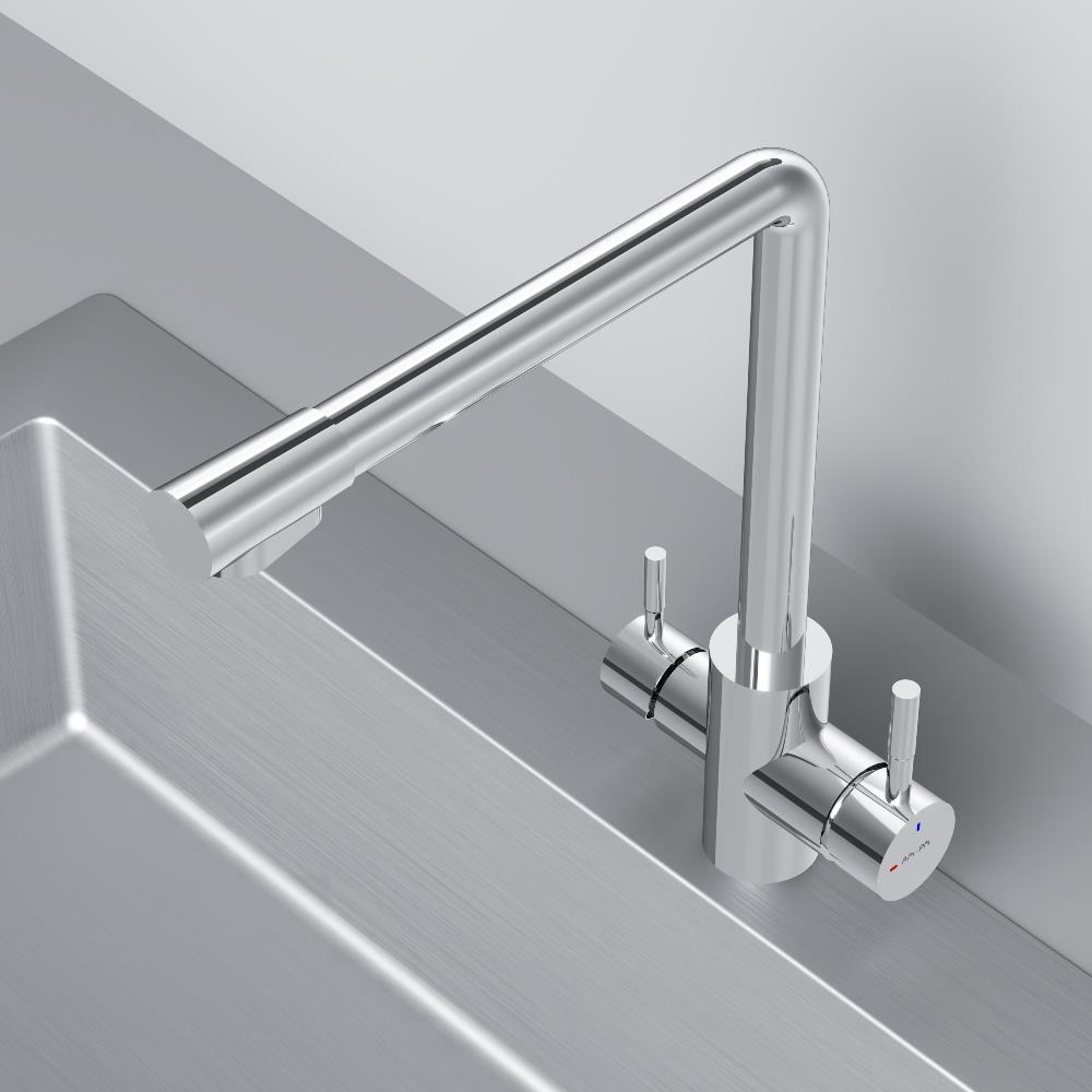Смеситель для кухни AM.PM с L-изливом с каналом для питьевой воды, хром X-Joy S F85B05700, хром